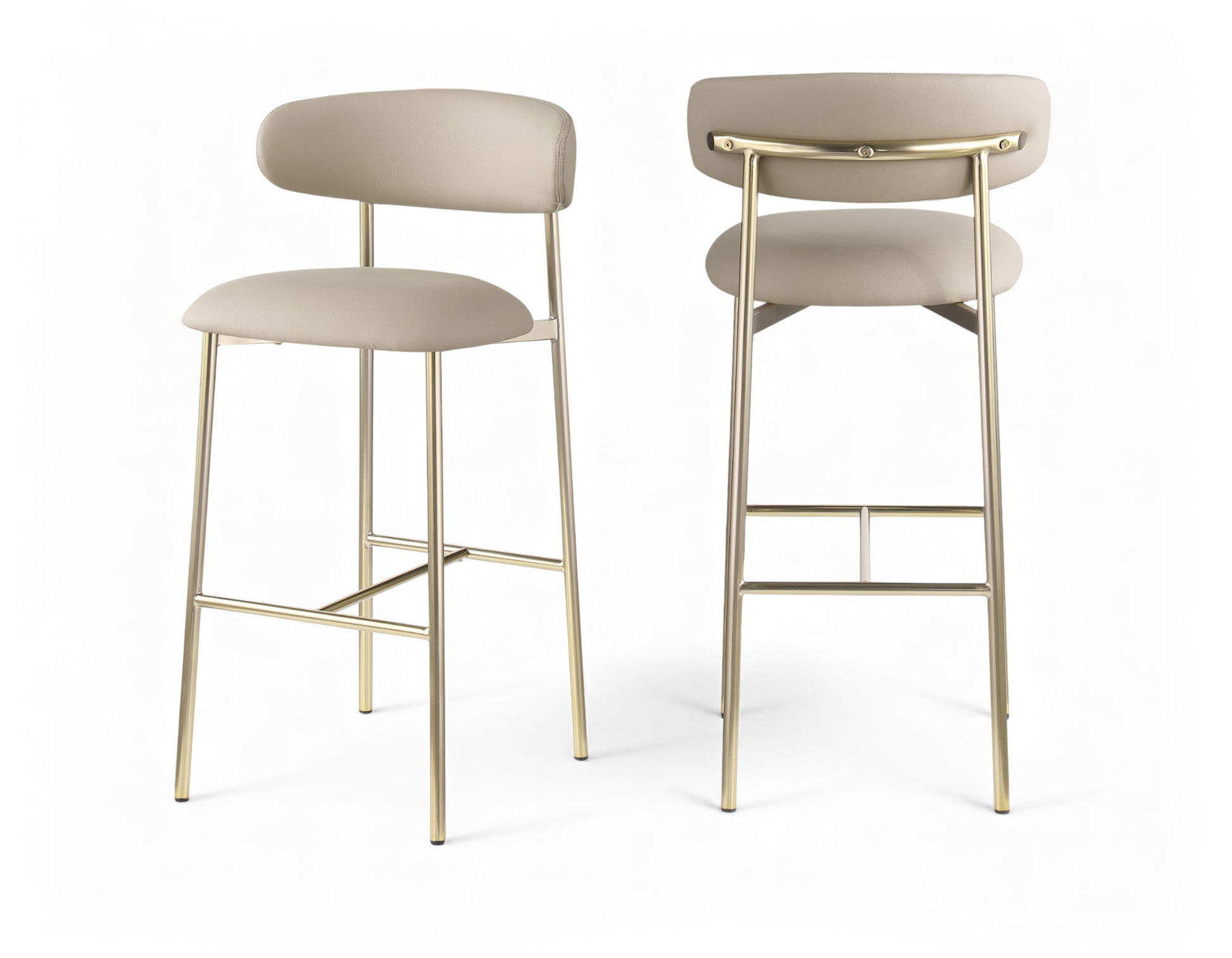 Lupita - Vegan Leather Upholstered Bar Stool (Set of 2) - Taupe / Brushed Gold