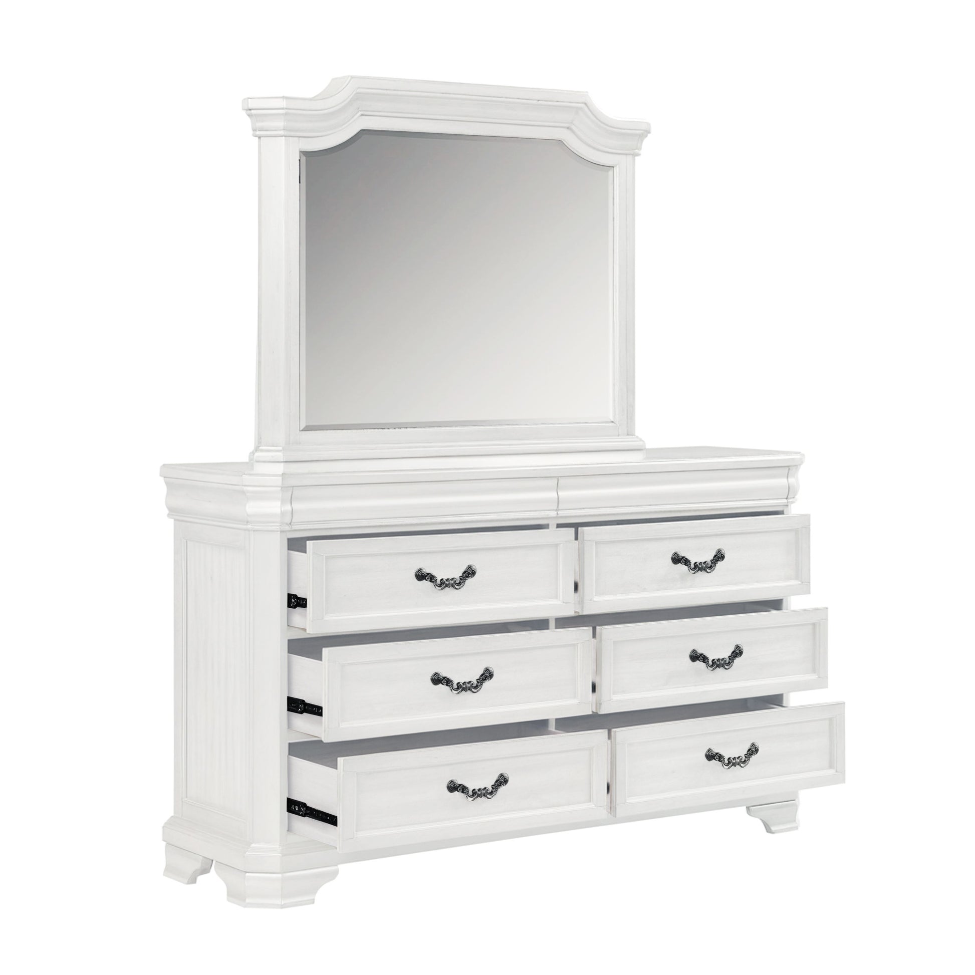The Lyndhurst 2 Piece Dresser and Mirror Set combines timeless elegance with practical functionality. This set includes one dresser and one mirror, both crafted from solid Acacia, Acacia veneers, and manufactured wood to ensure strength and durability. The rich finish is achieved through a meticulous multi-step process involving mild distressing, burnishing, and glazing, enhancing the wood''s natural beauty. The dresser features substantial moldings, bracket feet, and ornate hardware, making it a masterful style statement in any bedroom. Inside, the quality craftsmanship continues with English dovetail joinery, full extension drawer glides, finished drawer interiors, and velvet-lined top drawers to protect delicate items. The dresser provides ample storage with six spacious drawers, including two discreet velvet-lined drawers concealed behind the top moldings, and cedar-lined bottom drawers perfect for storing sweaters. The mirror features low distortion, beveled glass for a true reflection. This set offers both beauty and functionality, making it a perfect addition to your home.