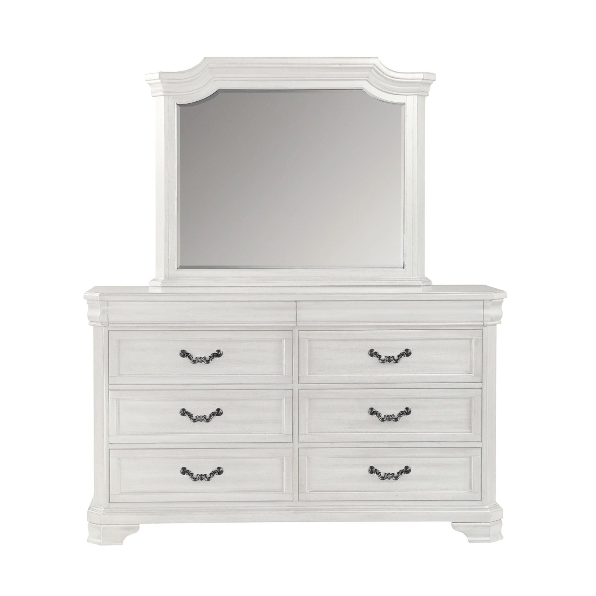 Introducing the Lyndhurst Landscape Mirror — a stunning addition to any bedroom decor. Crafted from solid Acacia, Acacia veneers, and manufactured wood, this mirror is built to last, ensuring enduring strength and durability. Its heirloom, achieved through a meticulous multi-step process, enhances the wood's natural beauty with gentle distressing, burnishing, and glazing. Designed for use with the matching Lyndhurst Dresser, the masterful style of this mirror is evident in its substantial, tiered crown molding tops, creating a true statement piece that adds sophistication to any space. Enjoy a clear view with the low distortion, beveled glass, providing a true reflection that enhances your daily routine. Elevate your bedroom decor with the timeless elegance and masterful craftsmanship of the Lyndhurst Landscape Mirror.
