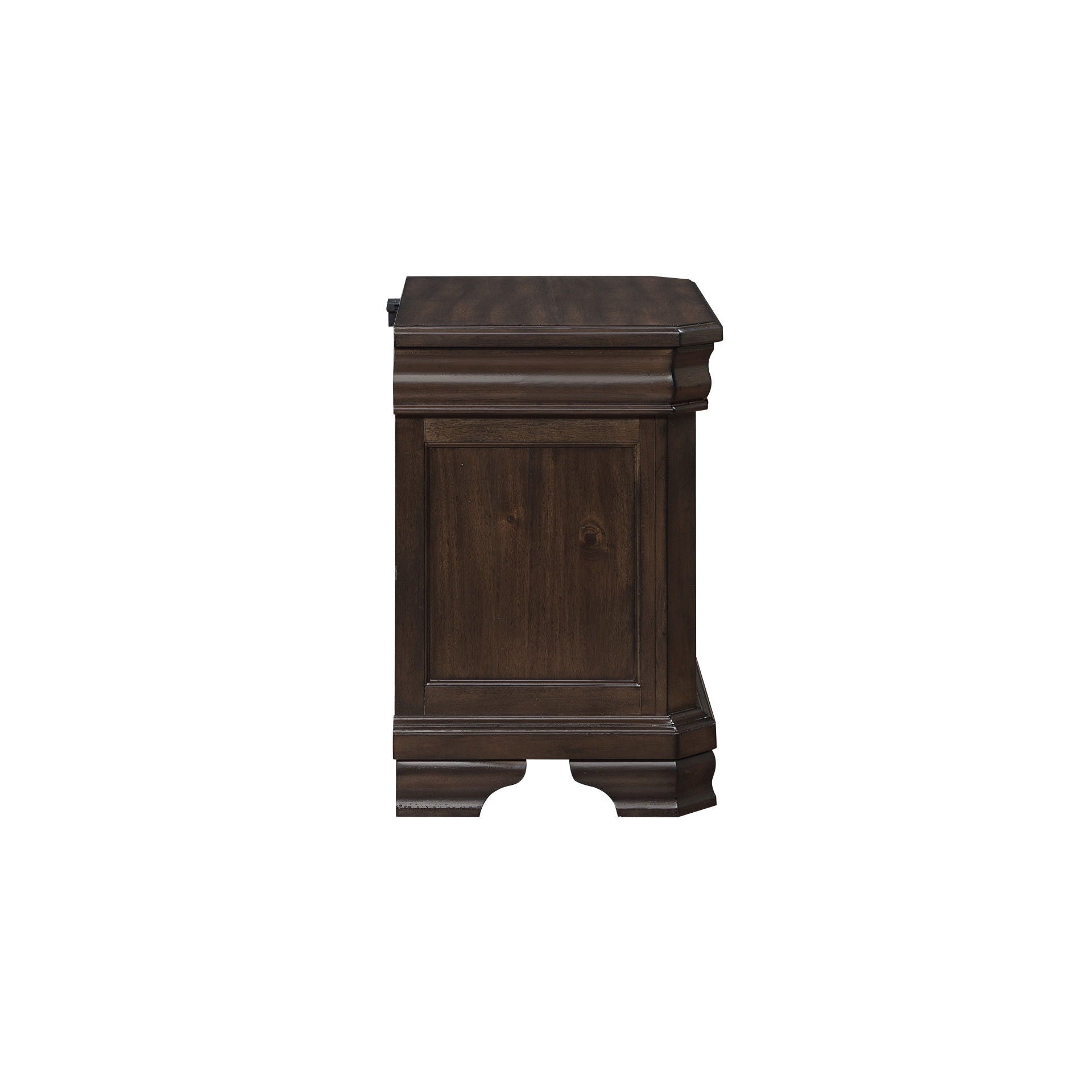 Introducing the Lyndhurst Nightstand — an essential piece for any bedroom sanctuary. Crafted from solid Acacia, Acacia veneers, and manufactured wood, this nightstand ensures lasting durability. Its heirloom finish, achieved through meticulous distressing, burnishing, and glazing, enhances the wood's natural beauty. Substantial moldings, bracket feet, and ornate hardware define its masterful style, making it a statement piece in any space. Inside, drawers are crafted with English dovetail joinery, full extension drawer glides, and finished interiors, with velvet-lined top drawer to protect delicate items. Experience modern convenience with the two-drawer design, equipped with a USBC charging station to keep your devices running smoothly. Plus, a discreet velvet-lined compartment hides behind the molding, providing additional storage for jewelry. Elevate your bedroom decor with the timeless elegance and functionality of the Lyndhurst Nightstand.