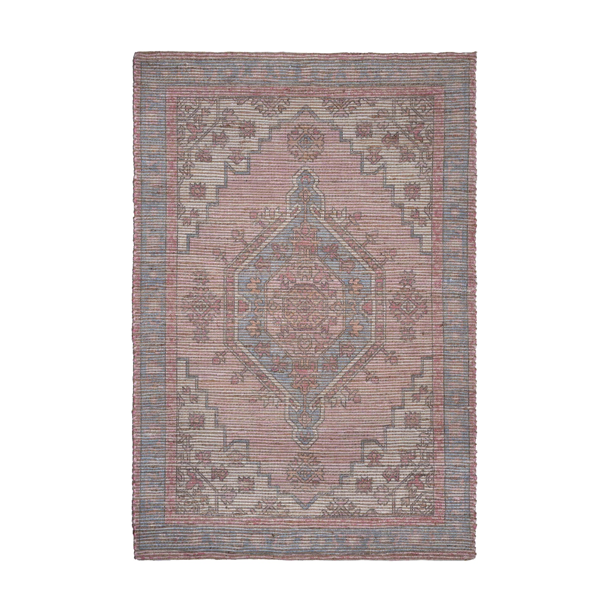 The Madra Blush Tone Rug is a perfect addition to your home with beautiful colors and an intriguing, traditional pattern. This rug is carefully handmade by artisans made with jute and cotton. Add this rug to any room to add charming character with a natural touch.