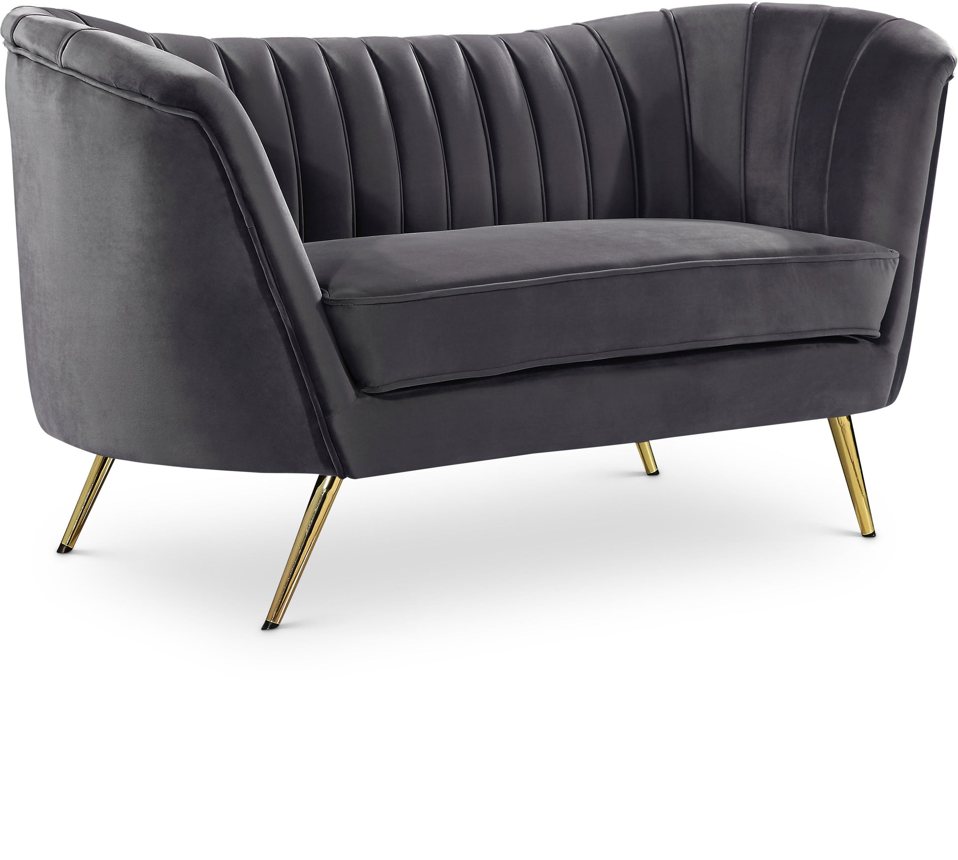 Lean back and lounge in luxurious style on this stunning Margo velvet loveseat by Meridian Furniture. This contemporary loveseat features plush velvet upholstery that is both classy and sumptuous against your skin, a single seat cushion and rounded arms that curve into a low, rounded back, creating a perfect, modern piece for your home. stainless steel legs support this loveseat and provide stunning contrast to the loveseat's plush, fabric.