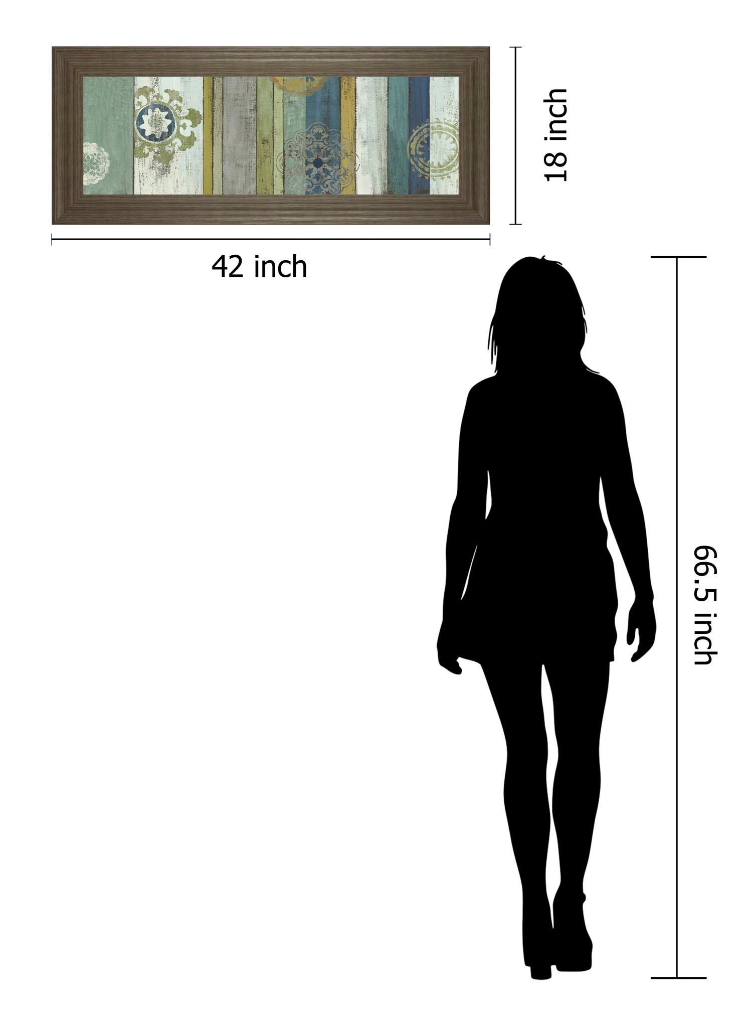 Step into a world of serene elegance with this captivating abstract wall art, where muted greens, blues, and soft yellows blend seamlessly with intricate ornamental motifs. The tranquil ash wood frame adds a rustic yet refined touch, perfectly complementing the artwork's harmonious palette and textured design. Crafted with premium materials and protected by crystal-clear glass, this elongated horizontal piece is ready to hang and brings a sophisticated, calming presence to any living room, bedroom, or office, effortlessly enhancing your space with its contemporary charm and timeless appeal.