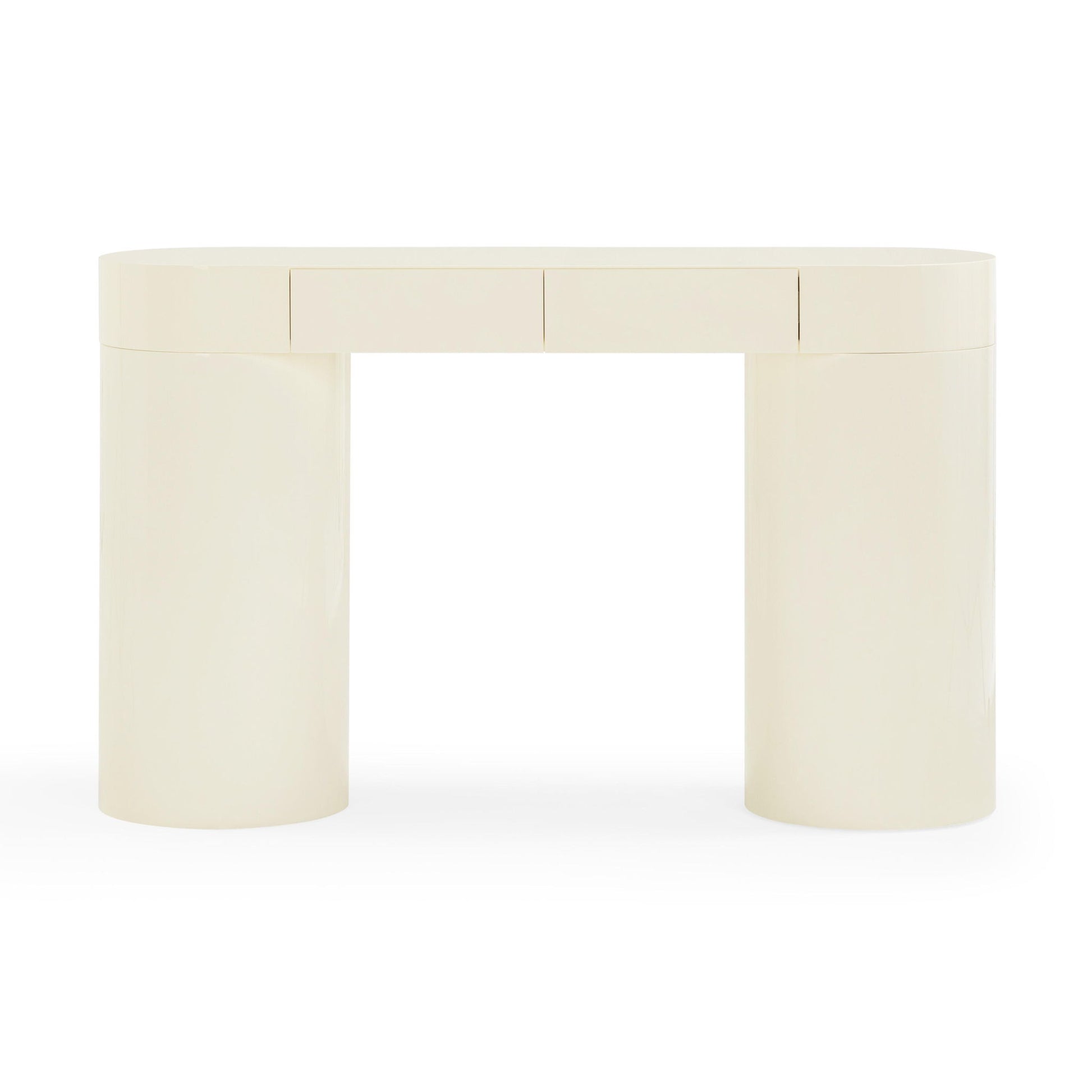 The Mira Console Table brings a bold pop of retro flair with its high-gloss lacquer finish in deep green or cream. Monochromatic styling, scratch-resistant surfaces, and smooth-gliding drawers make this Memphis-inspired design as practical as it is striking.