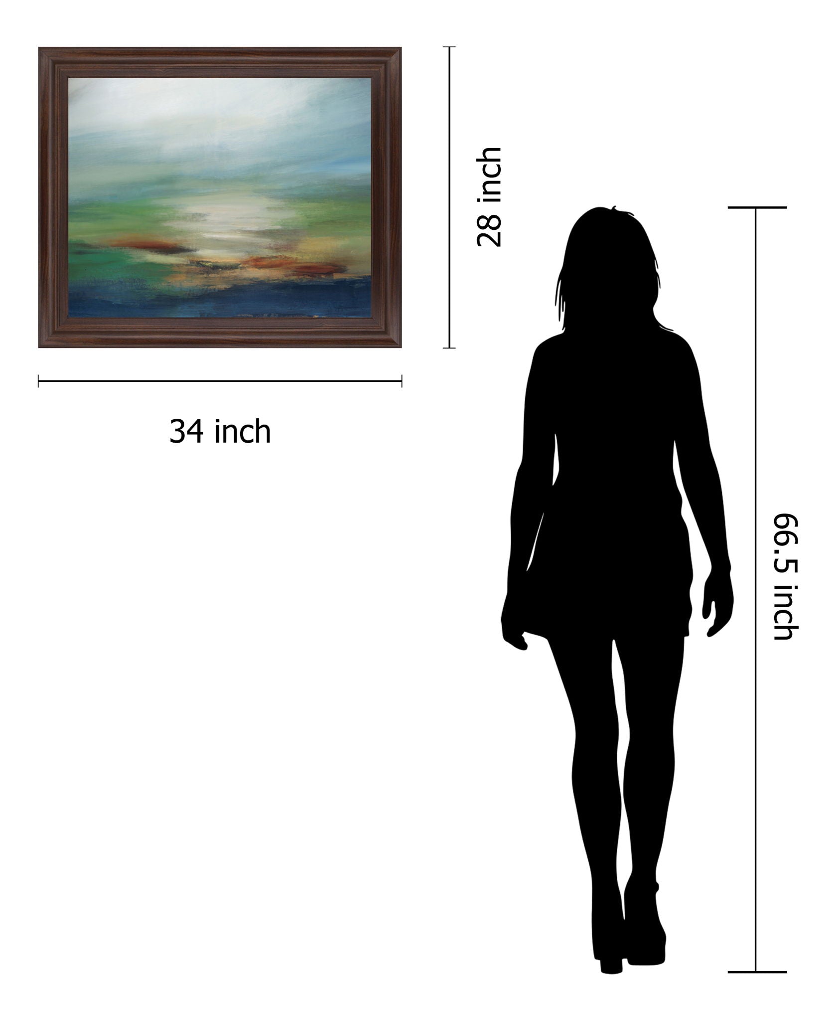 Immerse yourself in the tranquil dawn with this abstract composition that blends soft blues, greens, and warm earth tones into a harmonious scene. The wide cinnamon mocha frame adds a rich, sophisticated touch, perfectly complementing the peaceful palette and enhancing the artwork's depth. Protected by premium real glass and crafted with care, this framed wall art invites calm and inspiration into any living room or office, making it a timeless statement piece that captures the serene beauty of first light.