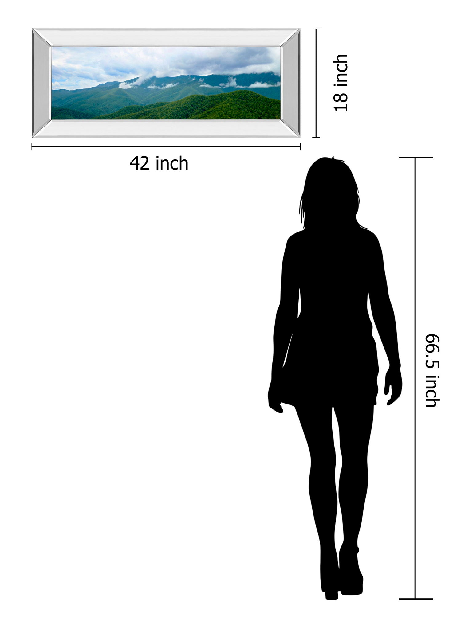 Step into a realm of calm with "Misty Mountains II," a panoramic portrayal of nature’s quiet grandeur. This horizontal wall art captures the lush green hills beneath a sky of soft clouds and mist, evoking a peaceful atmosphere that invites reflection. Encased in a sleek 2.5-inch mirrored frame, the piece not only protects the vivid photographic details with real glass but also adds a contemporary shine that enhances the depth and vibrancy of the scene. Perfectly suited for living rooms or offices, this artwork brings a sophisticated touch of tranquility and modern elegance to any space, ready to hang and proudly made in the USA.