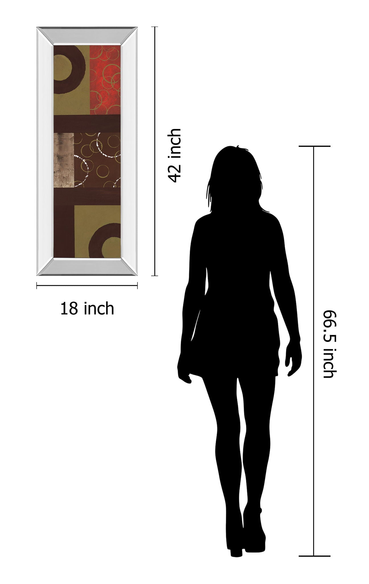 Discover a captivating blend of shapes and colors with this Geometric Harmony framed wall art. Its rich palette of brown, red, olive, beige, and white tones creates a warm and inviting atmosphere, while the bold circular patterns add a modern artistic touch. Encased in a sleek mirrored frame with premium real glass, this vertical piece not only protects the vibrant graphic art but also reflects light beautifully, enhancing any living room, office, or bedroom. Expertly crafted and ready to hang, it offers a sophisticated transitional style that effortlessly elevates your décor.
