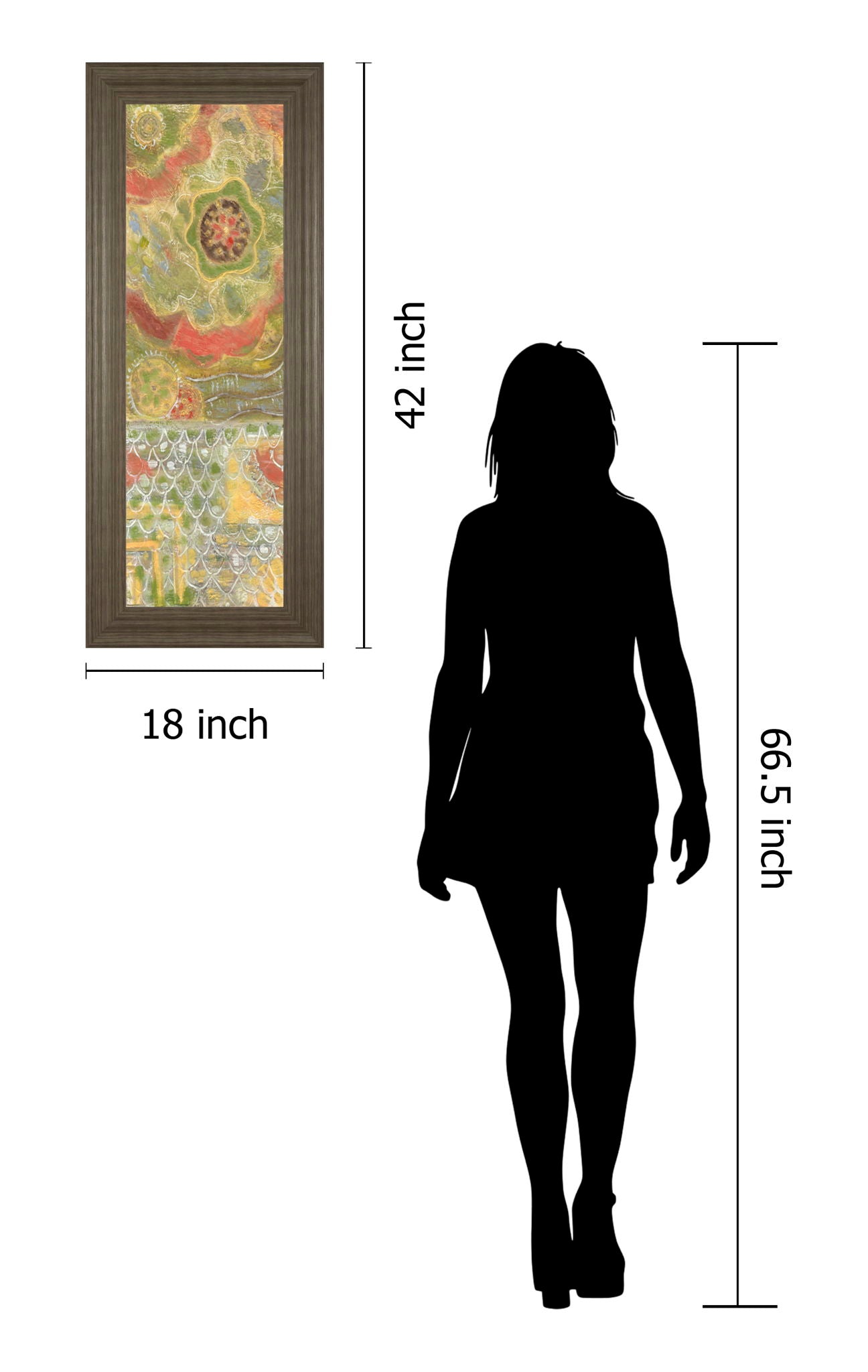 Immerse yourself in the vibrant charm of this abstract piece inspired by Moroccan artistry. Its rich tapestry of reds, greens, yellows, and subtle blues is brought to life through intricate textures and layered mixed media, inviting you to explore every detail. Encased in a tranquil ash frame with premium real glass, this artwork adds depth and sophistication to any living room, bedroom, or office. Expertly crafted in the USA, it arrives ready to hang, offering a whimsical yet elegant accent that protects and preserves the vivid colors for years of enjoyment.
