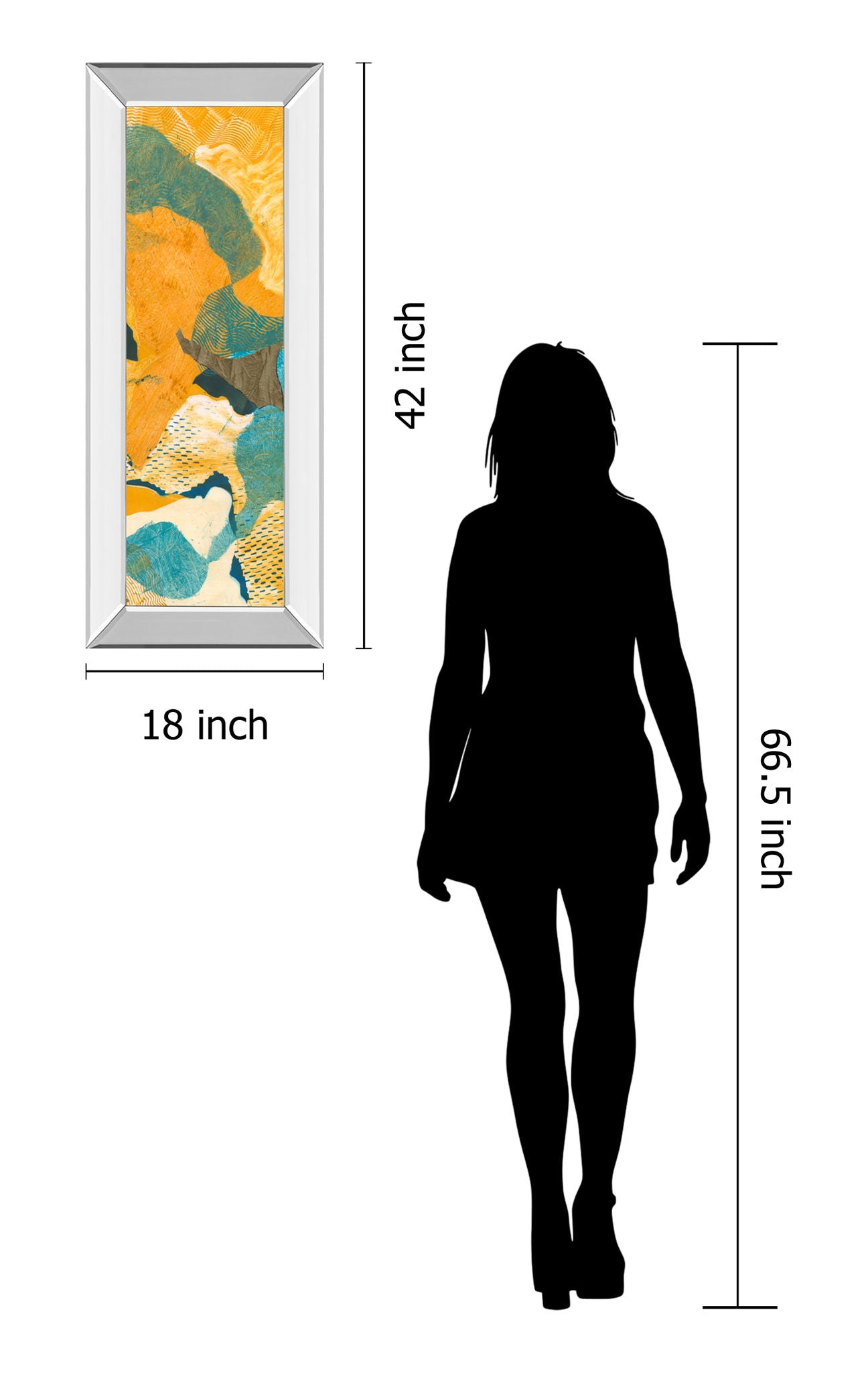 This vibrant abstract piece invites you into a world of dynamic shapes and rich textures, blending warm oranges with cool teals and subtle browns. Encased in a sleek mirrored frame, the artwork not only protects the mixed media composition but also adds a reflective elegance that enhances any room. Perfect for living rooms, offices, or hallways, this vertical wall art brings a contemporary splash of color and sophistication, ready to hang and elevate your space with its unique modern charm.