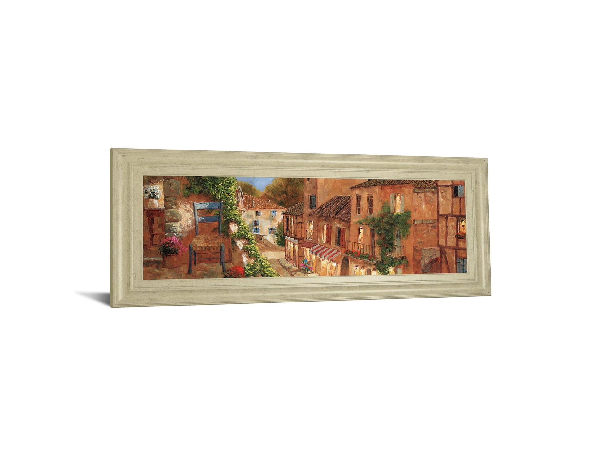 Immerse yourself in the cozy charm of a sunlit village street with "My Balcony." This horizontal framed wall art captures the warm hues of terracotta buildings and lush greenery, inviting you to linger in a peaceful European setting. The beige nature-inspired frame complements the rich palette of browns, greens, and soft blues, enhancing the traditional style that brings a timeless elegance to any living room, dining room, or hallway. Crafted with premium materials and real glass, this piece offers a window to tranquil moments and simple pleasures, perfect for adding a welcoming touch to your home décor.