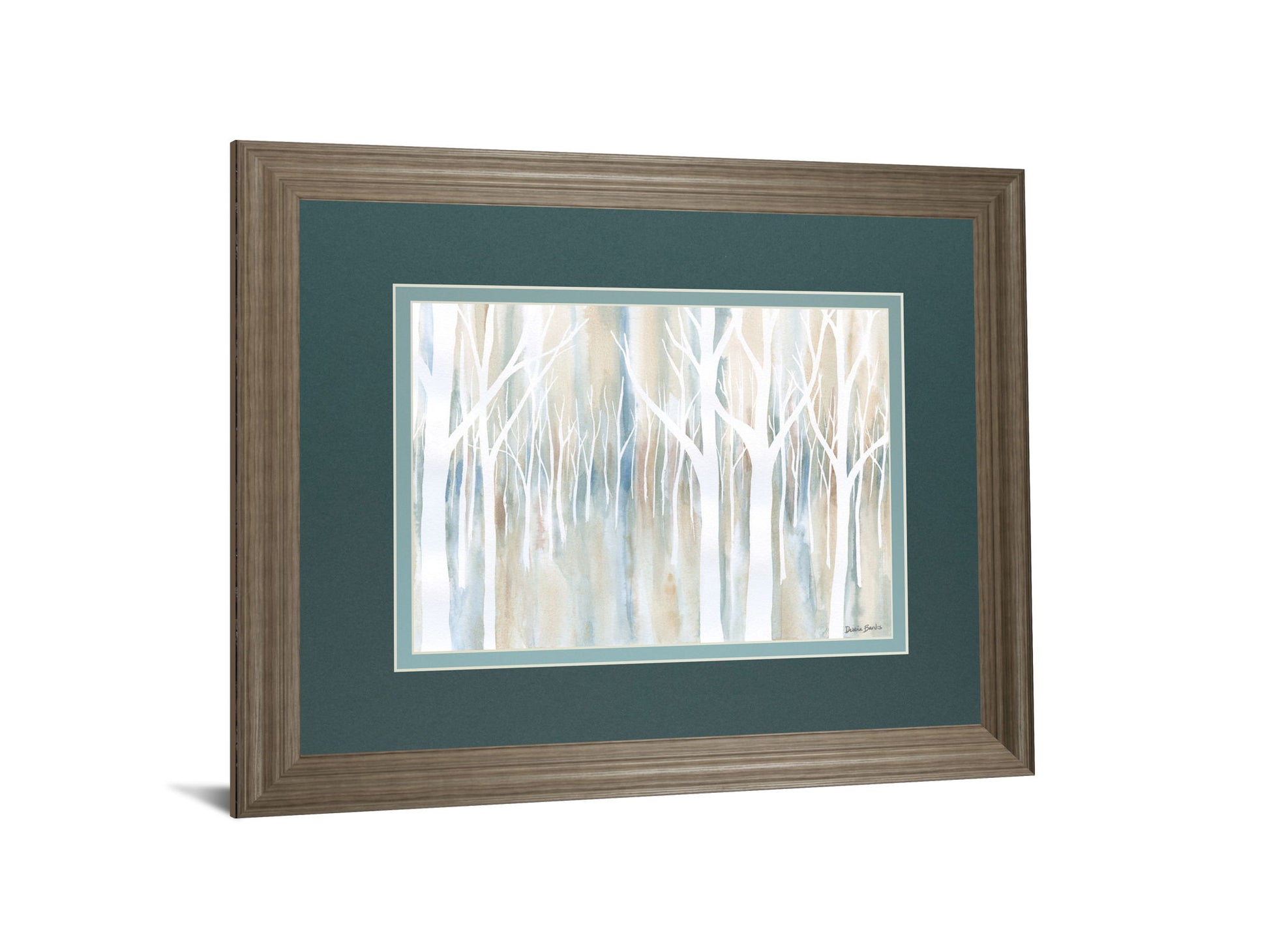 Step into the serene embrace of "Mystical Woods," a captivating watercolor that invites tranquility and reflection into your space. This contemporary botanical piece features delicate, ethereal trees rendered in soft blues, creams, and gentle browns, evoking the quiet mystery of a forest at dawn. Encased in an elegant 3-inch tranquil ash frame with double matting in complementary shades of teal and cream, this artwork adds depth and sophistication to any living room, bedroom, or office. The premium real glass protects the vibrant watercolor while enhancing its subtle details, making it a timeless addition to your home décor. Ready to hang and crafted with care, "Mystical Woods" transforms your walls into a peaceful woodland retreat.