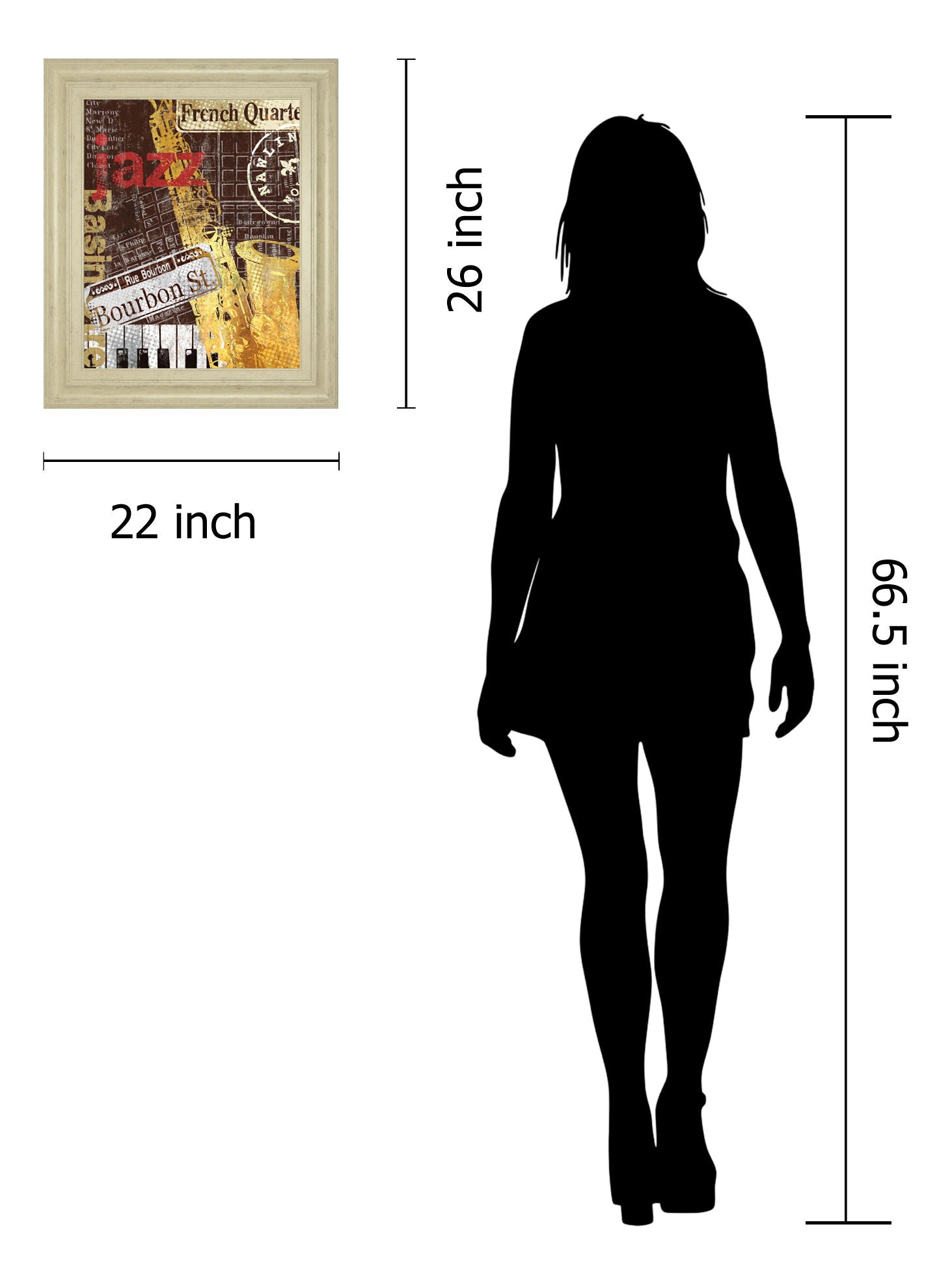 Step into the soulful rhythm of New Orleans with this vintage-inspired framed wall art that captures the essence of the French Quarter's vibrant jazz scene. Rich tones of gold, brown, and red blend with iconic imagery like saxophones, piano keys, and Bourbon Street signs, evoking the lively spirit and timeless energy of the city. Encased in a wide ivory frame with premium real glass, this piece offers elegant protection and a ready-to-hang design, perfect for music lovers and art enthusiasts seeking to bring a touch of retro charm and musical heritage into their living room, music room, or den.