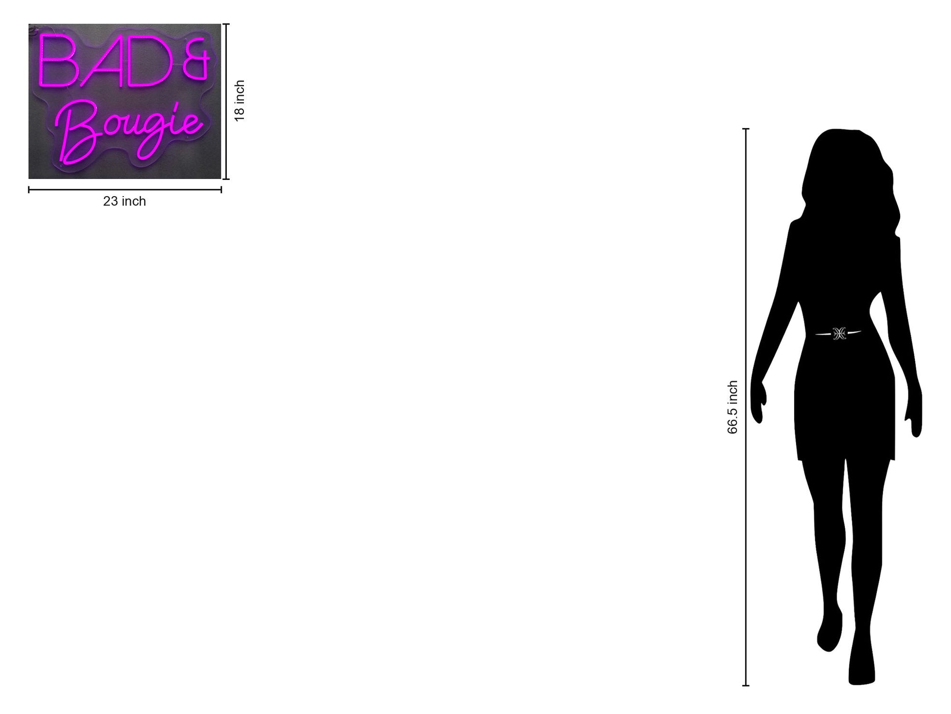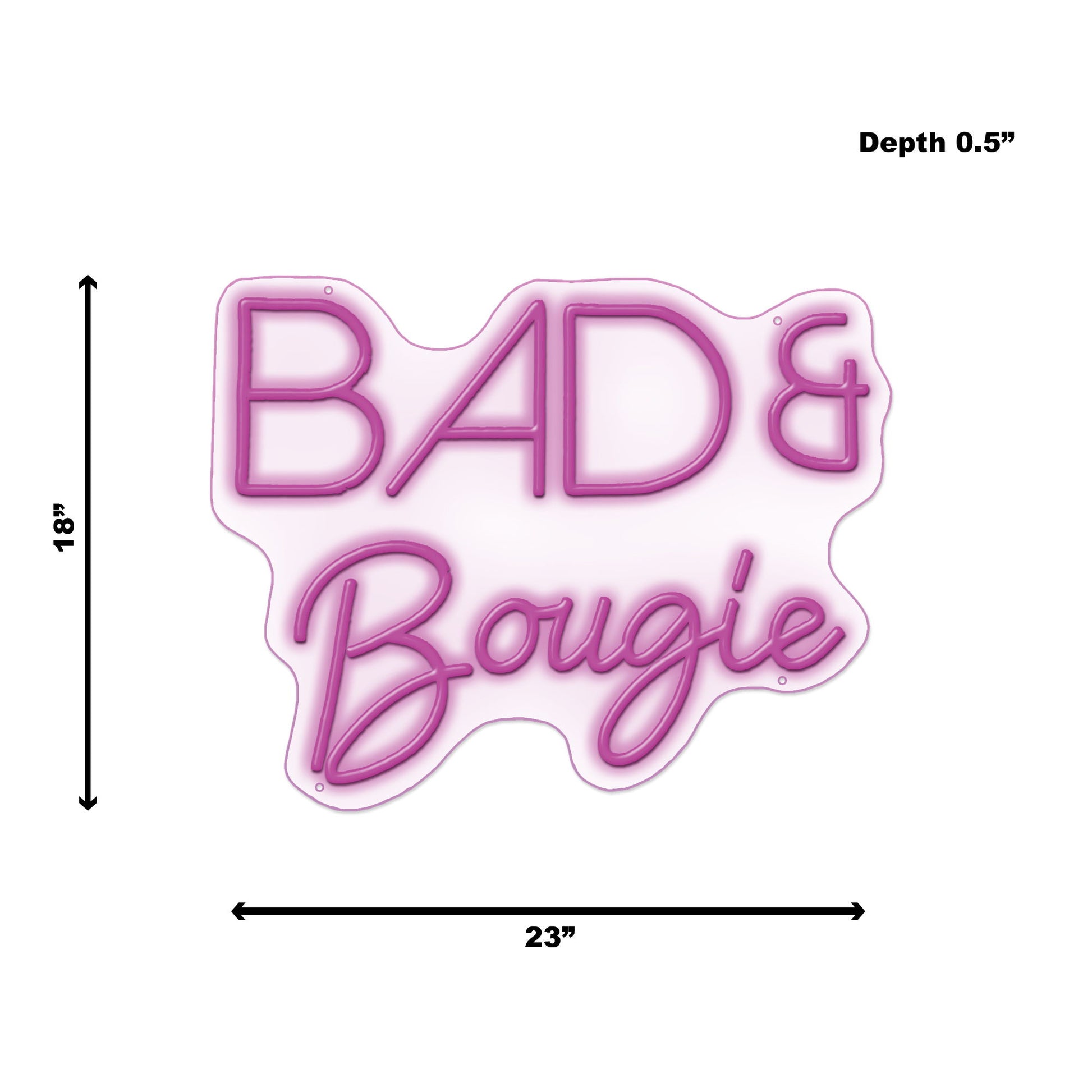 Illuminate your space with the captivating “Bad & Bougie” neon typography wall art. This contemporary piece combines acrylic craftsmanship with vibrant neon lighting, delivering a bold statement that energizes any room. Powered by a plug-in connection with a convenient on/off switch, this artwork offers a permanent glow—perfect for living rooms, beauty salons, boutiques, or lounges. Arriving fully assembled with professional mounting hardware, it’s ready to elevate your décor with a touch of edgy sophistication and luminous charm.