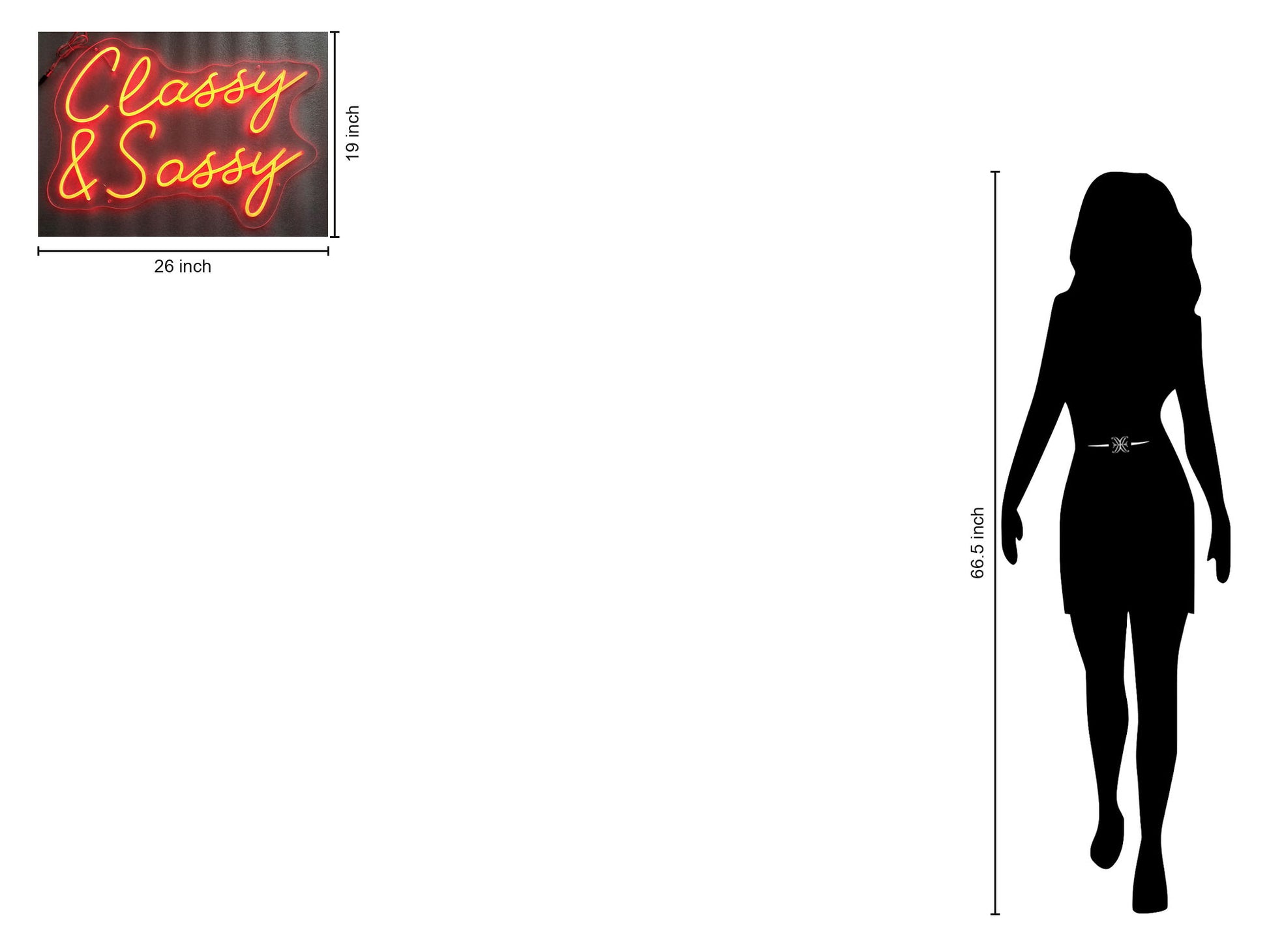 Illuminate your space with the “Classy & Sassy” neon typography wall art, a vibrant blend of contemporary style and bold expression. Crafted from acrylic and polystyrene, this mixed media piece features plug-in neon lighting with a built-in on/off switch, delivering a continuous, radiant glow. The lively yellow neon script shines against a dark backdrop, creating a striking contrast that adds personality and flair to any living room, bedroom, beauty studio, boutique, or dressing room. Ready to hang with professional mounting hardware, this artwork effortlessly combines functional lighting with eye-catching design, making it a perfect statement piece for modern interiors.