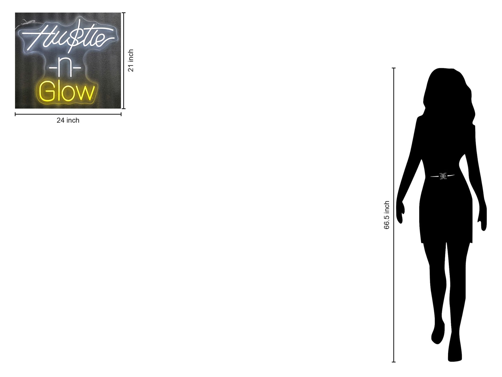 Illuminate your space with “Hustle n Glow,” a striking neon typography wall art piece that fuses contemporary style with radiant illumination. Crafted from acrylic and polystyrene, this mixed media design features vibrant neon lighting in white and yellow hues, powered by a plug-in connection for a continuous, permanent glow. With an easy-access on/off switch and professional mounting hardware included, it arrives fully assembled and ready to energize home offices, studios, or dressing rooms with bold light and unshakable ambition—day or night.