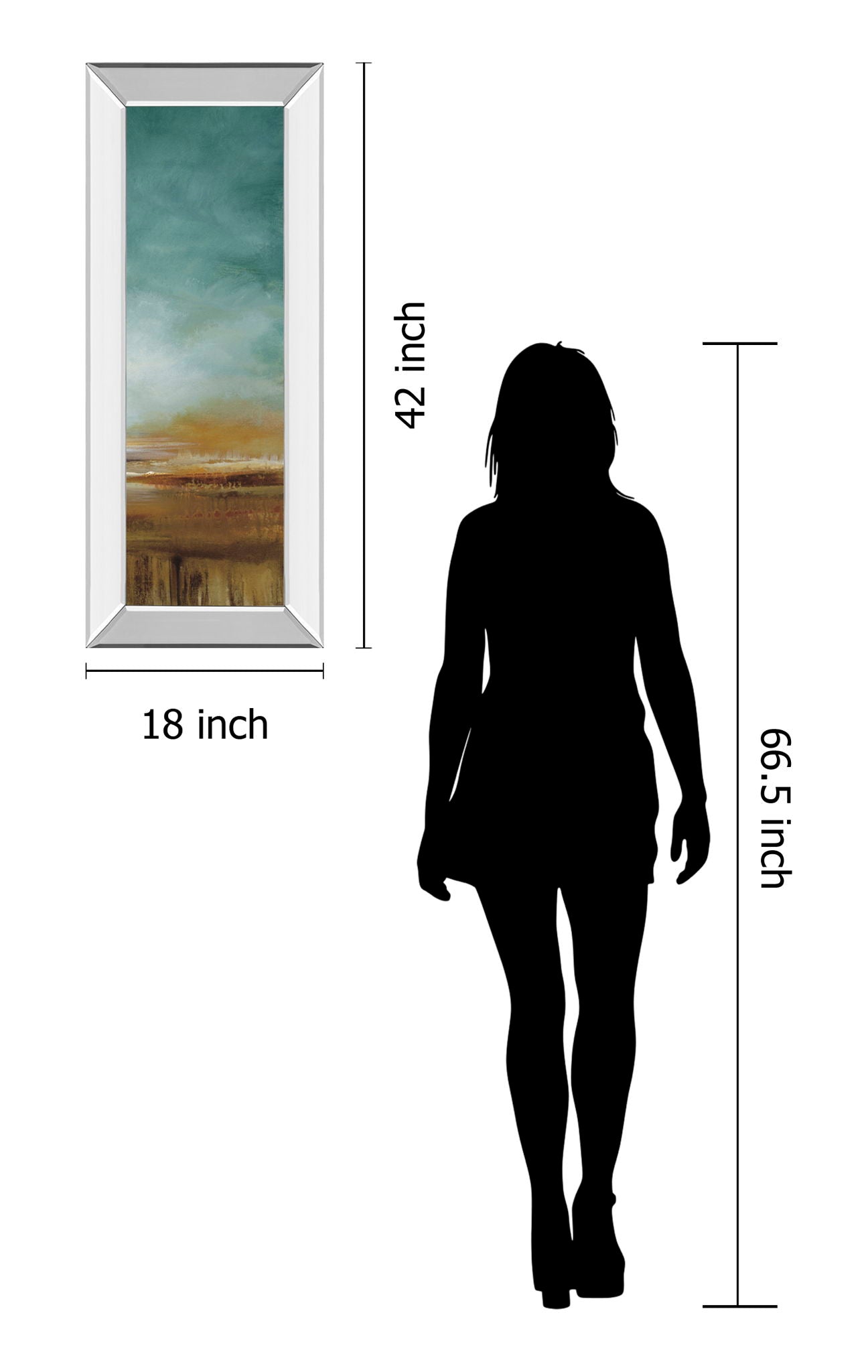 Immerse yourself in the tranquil beauty of "New Horizons III," a framed wall art piece that captures the essence of distant landscapes through a harmonious blend of teal, amber, and earthy tones. This contemporary artwork invites you to explore serene vistas and fresh perspectives from the comfort of your living space. Encased in a sleek 2.5-inch mirrored frame, it reflects light to add depth and modern elegance, enhancing the ambiance of any room. Crafted with premium real glass and designed for easy hanging, this piece is perfect for living rooms, offices, or bedrooms seeking a sophisticated yet calming atmosphere. Made in the USA, it combines artistic expression with quality craftsmanship to inspire and uplift your everyday environment.