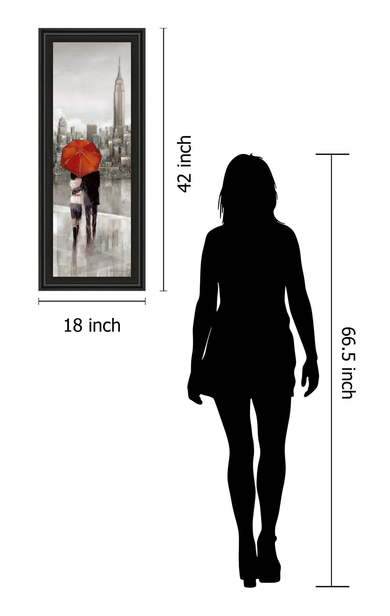 Immerse yourself in a tender moment with "City Embrace," a vintage-inspired oil painting that portrays a couple sharing a quiet embrace beneath a striking red umbrella against a misty urban skyline. The muted tones of gray, beige, and black create a nostalgic atmosphere, while the vibrant red umbrella adds a splash of warmth and passion. Framed in a sleek midnight aura frame with real glass protection, this 18 by 42-inch piece brings a sophisticated yet heartfelt touch to any living room, office, or den. Crafted with expert care, it arrives ready to hang, inviting you to add a romantic urban charm to your space.