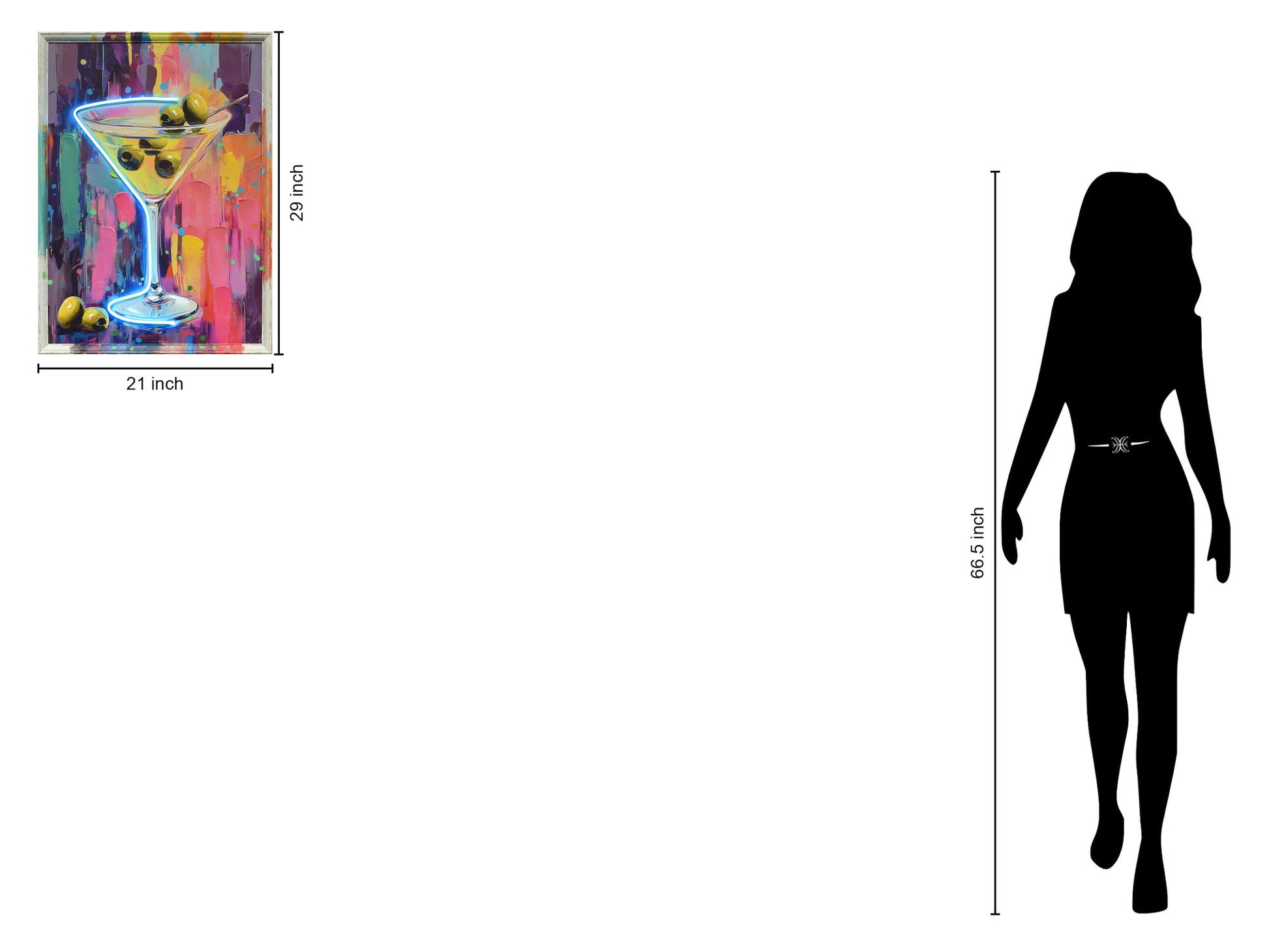Illuminate your living space with the Glow Martini Wall Art, a captivating fusion of hand-painted artistry and vibrant LED lighting. This mixed media piece features a striking martini glass adorned with olives, set against a dynamic, colorful abstract background that pulses with neon glow. Designed for versatility, it offers dual power options—plug-in for continuous illumination or battery-operated for cordless convenience—making it perfect for any room from your living room to a stylish bar or entertainment area. Arriving fully assembled with professional mounting hardware, this framed artwork effortlessly combines contemporary style with functional flair, creating a bold statement that transforms your wall day and night.