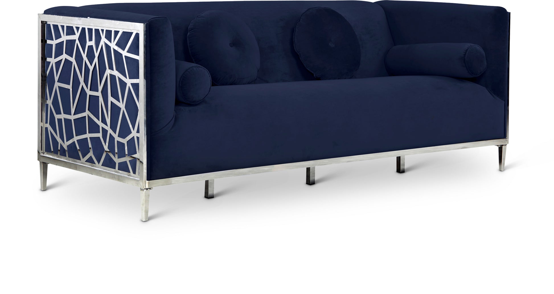 Catch the eyes of all who step foot in your home with this bold Opal velvet sofa. Its stainless steel patterned design creates a contemporary flair against its plush, velvet upholstery, creating a home accent piece that is both comfy and stylish. Its roomy design offers ample room to kick back and relax after a long day, while its stocky shape adds a daring touch to your decor.