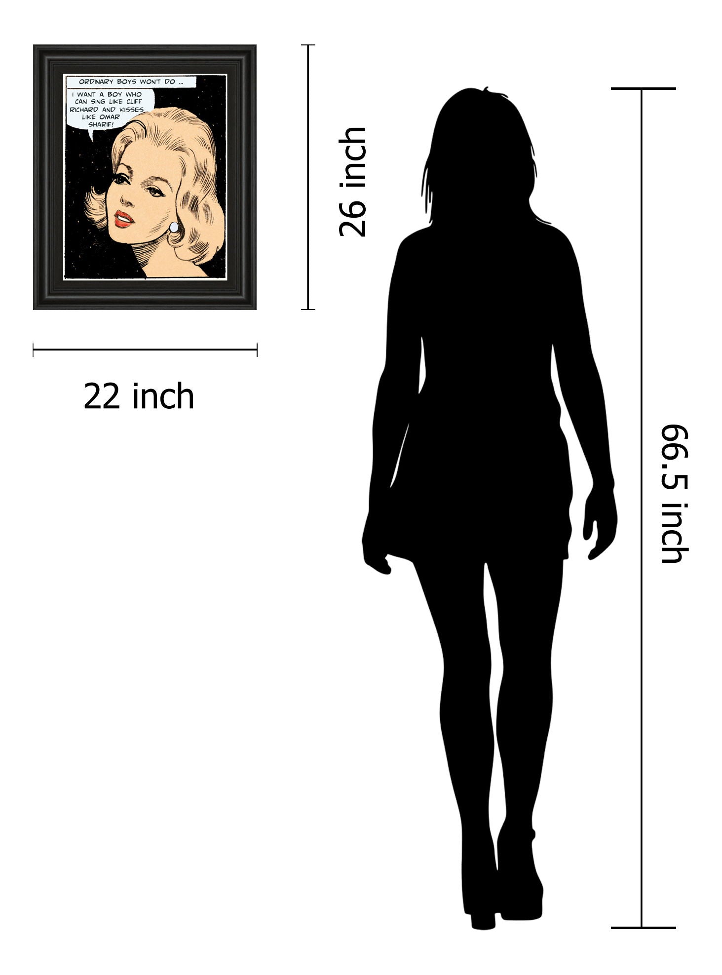 Step into a world where vintage comic charm meets modern sophistication with this captivating framed wall art. Featuring a glamorous woman rendered in classic pop art style, the piece exudes a nostalgic yet contemporary vibe that draws the eye and sparks conversation. Encased in a deep midnight aura frame with premium real glass and sturdy MDF, this 22 by 26-inch artwork is perfect for adding a touch of elegance and personality to living rooms, offices, or dens. Its rich color palette of black, beige, red, and white enhances the dramatic flair, making it a timeless statement piece that celebrates bold style and artistic expression.