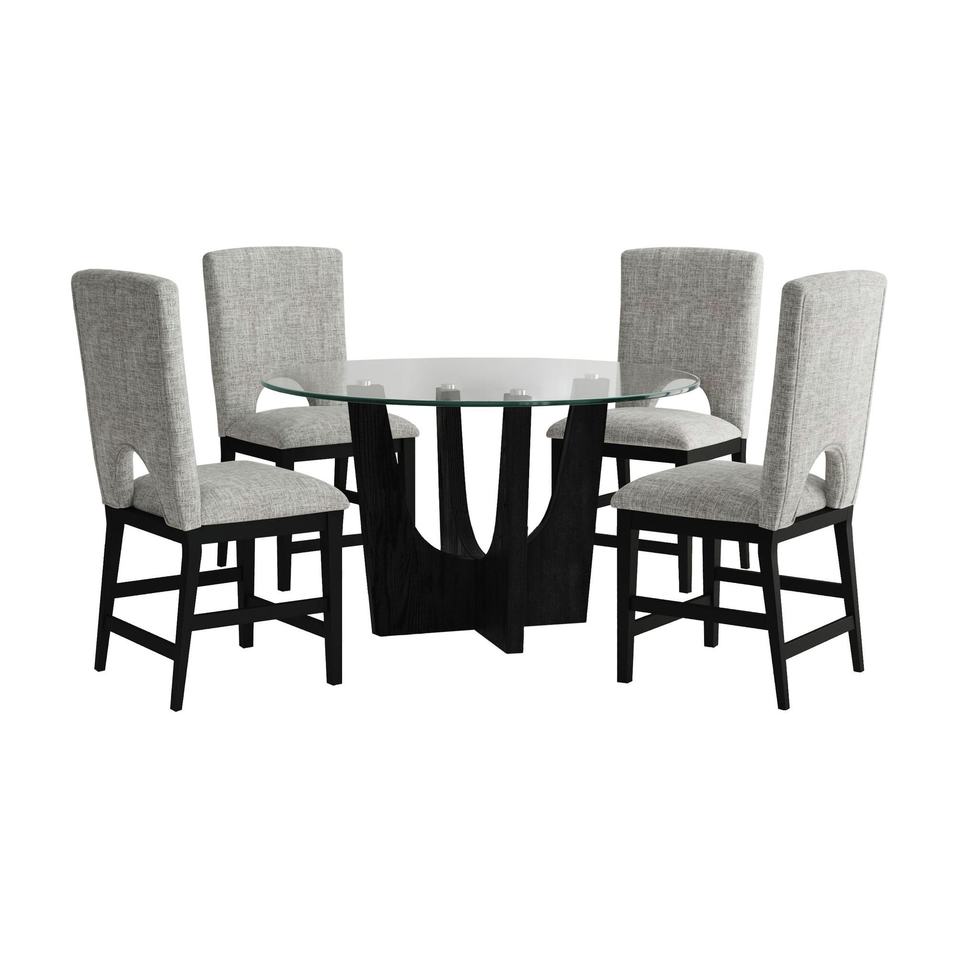 Oregon - 5 Piece Counter Height Dining Set (Round Counter Table With Glass Top And Four Chairs) - Black