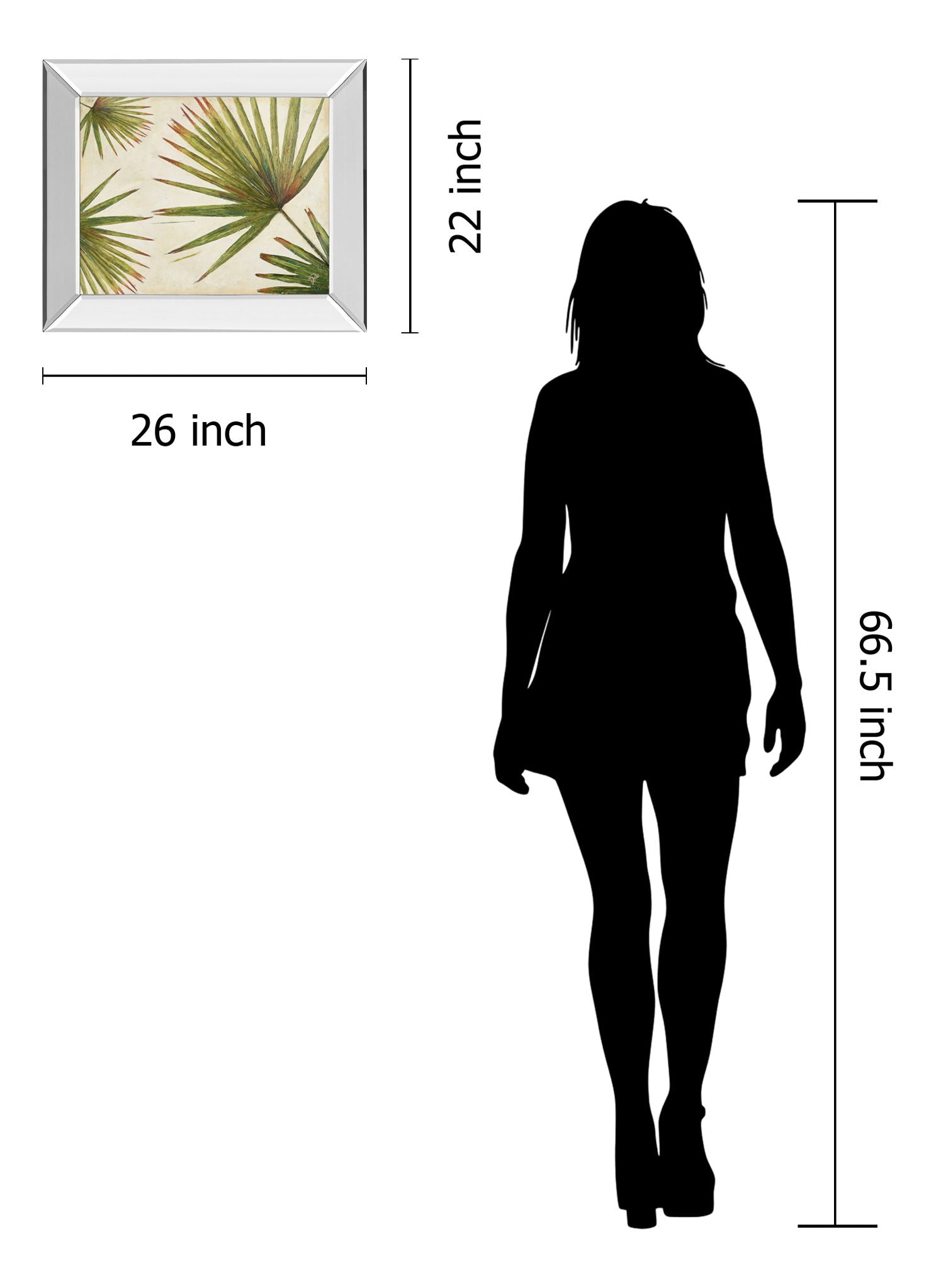 Step into a serene oasis with this Palm Breeze framed wall art, where vibrant green palm leaves fan out against a soft cream backdrop. The textured brushstrokes bring a natural, organic feel that complements any contemporary space. Encased in a sleek mirrored frame, the artwork reflects light and adds a subtle glow, enhancing the room's ambiance. Crafted with premium real glass for lasting clarity and vivid color preservation, this piece is ready to hang and perfect for living rooms, bedrooms, or offices seeking a fresh botanical touch infused with modern elegance.