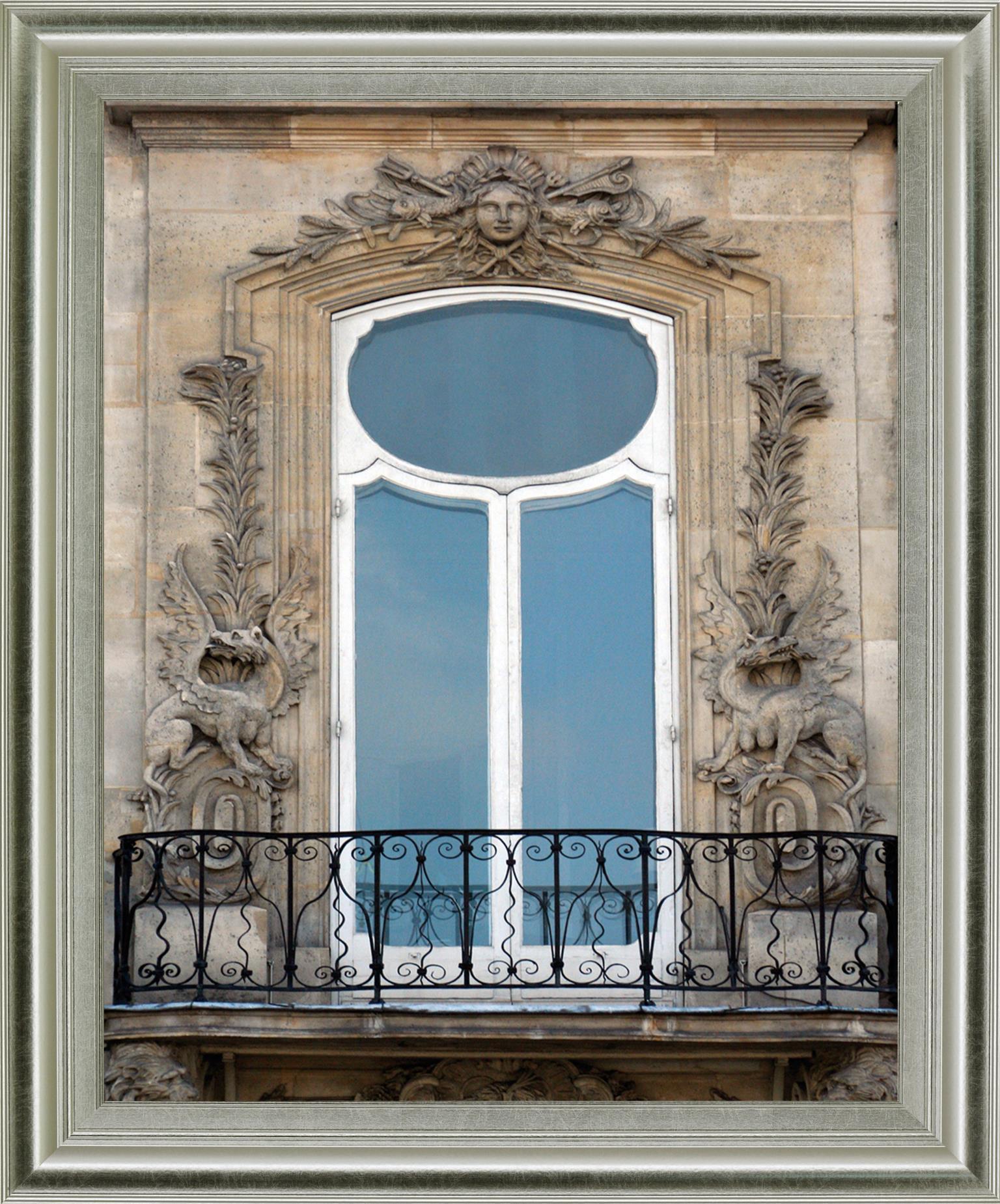 Step into the heart of Paris with this exquisite framed wall art capturing a classic window adorned with intricate stone carvings and delicate wrought iron details. The elegant silver frame enhances the historic charm, making it a perfect centerpiece for any living room or office. Crafted with premium real glass and a sturdy MDF frame, this vertical photograph brings a refined European atmosphere to your space, blending timeless architecture with contemporary style effortlessly.