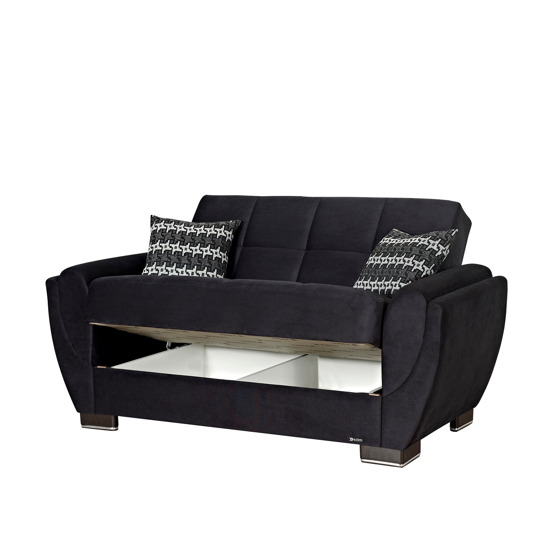 Ottomanson Armada Air - Upholstered Convertible Loveseat With Storage - Black Microfiber