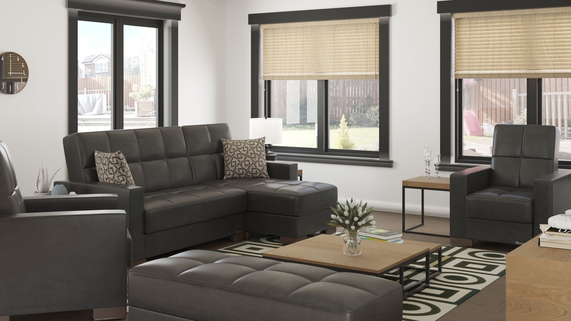 Rest with the best in the comfort of your family and friends. We welcome you to try out our new Armada furniture collection in order to achieve the most optimal quality possible. Fashion and function coalesce for optimal versatility, making this furniture suitable for any space and existing decor. The classy clean-lined upholstery is available in a rich color palette for every type of aesthetic. These elegant furniture pieces feature hidden storage compartments for your extra messy items, blankets, or even cluttered toys from your kids & pets. This functional set will instantly turn any room into a guest room. Unfolding these furniture items into sleeping position has been made easy, simply lift the seat part and click-clack the backrest allowing for a flat position, which will also come in handy if you just feel too tired or lazy to go to bed after watching some TV. For ease of assembly, please refer to the assembly documents provided.