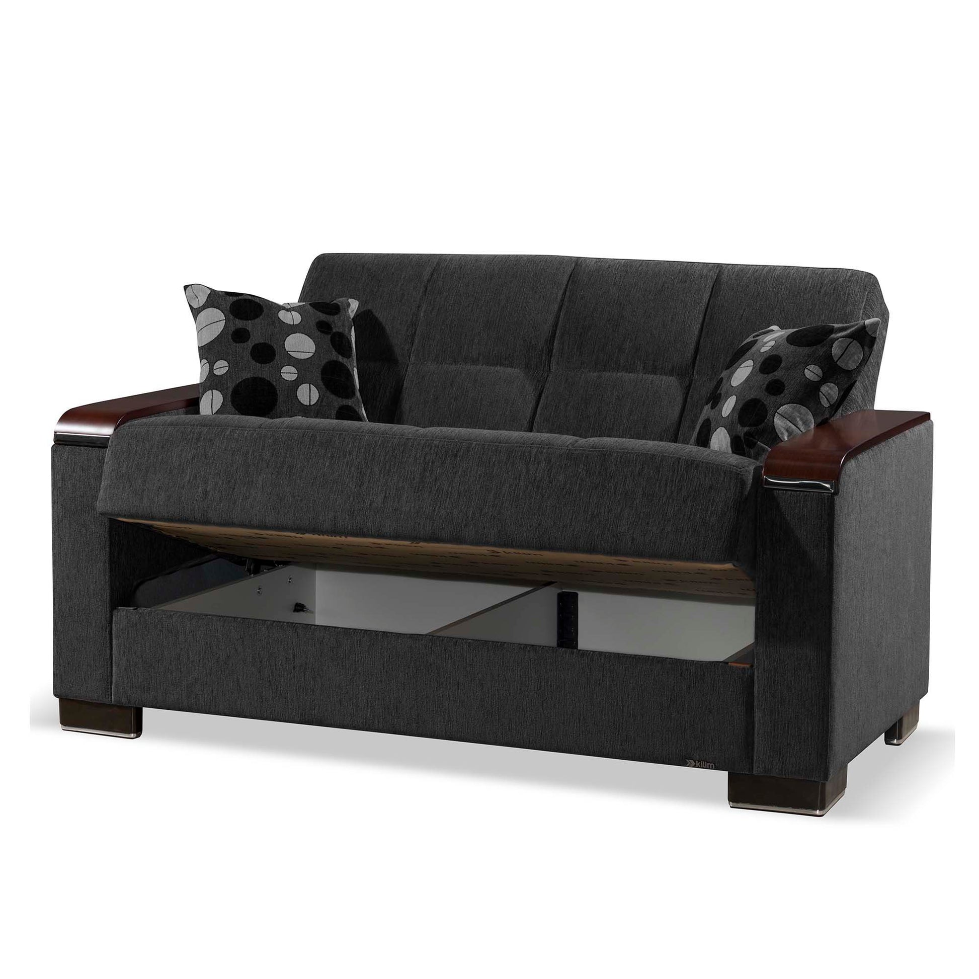 Ottomanson Armada X - Upholstered Convertible Wood Trimmed Loveseat With Storage - Gray/Black PU Polyester