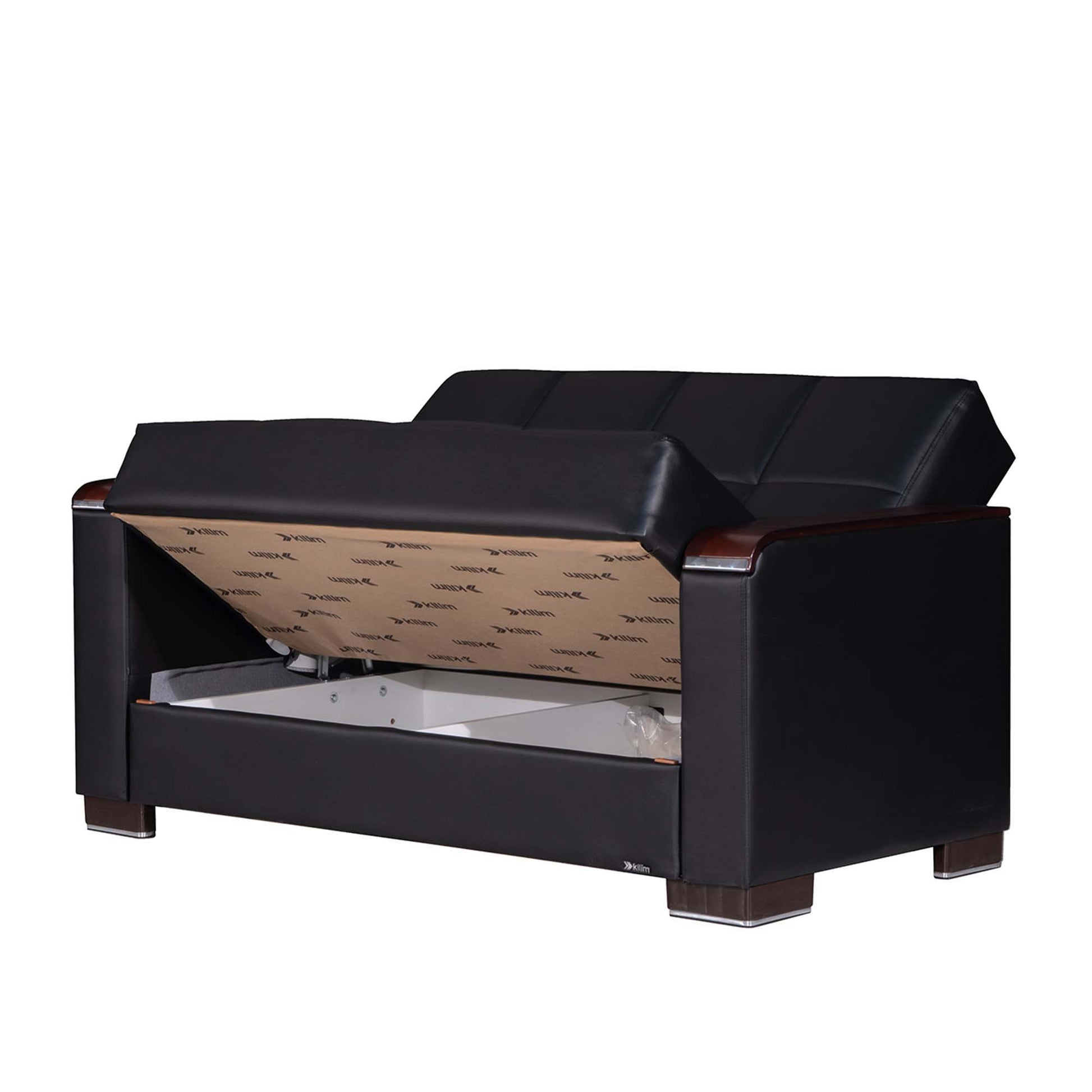 Ottomanson Armada X - Upholstered Convertible Wood Trimmed Loveseat With Storage - Black PU