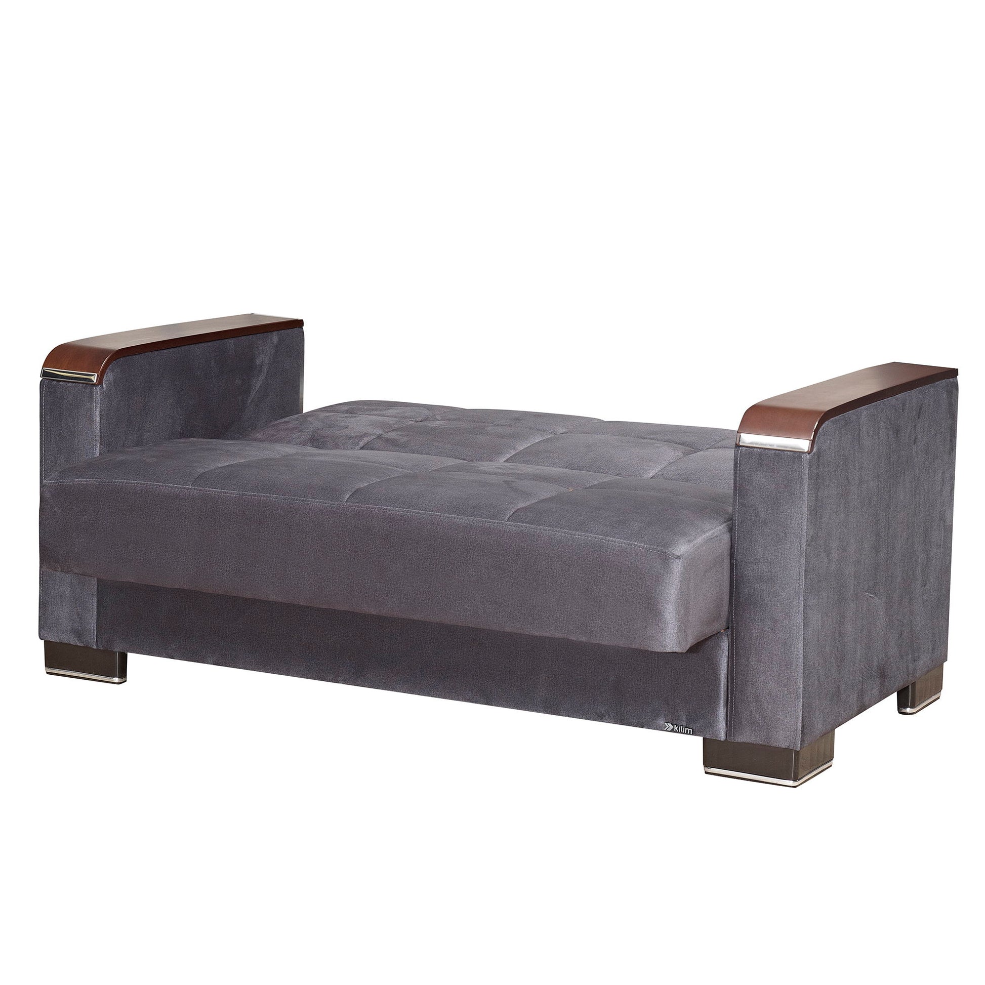 Ottomanson Armada X - Upholstered Convertible Wood Trimmed Loveseat With Storage - Gray Microfiber