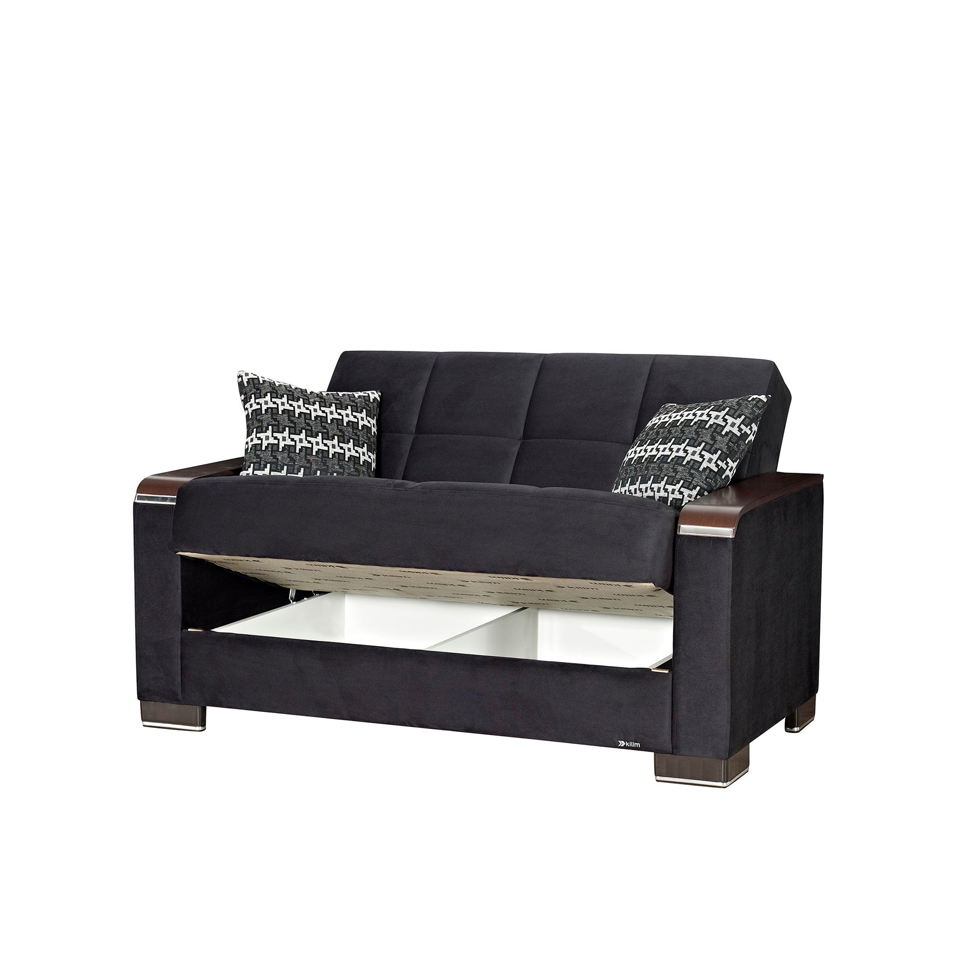 Ottomanson Armada X - Upholstered Convertible Wood Trimmed Loveseat With Storage - Black Microfiber