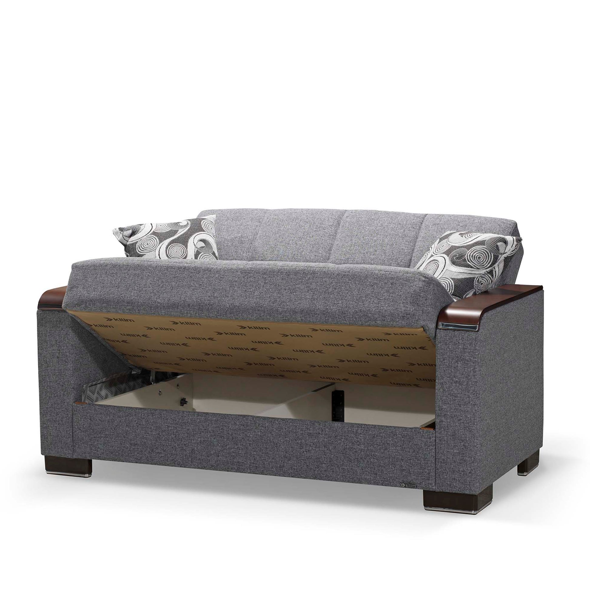 Ottomanson Armada X - Upholstered Convertible Wood Trimmed Loveseat With Storage - Gray Polyester