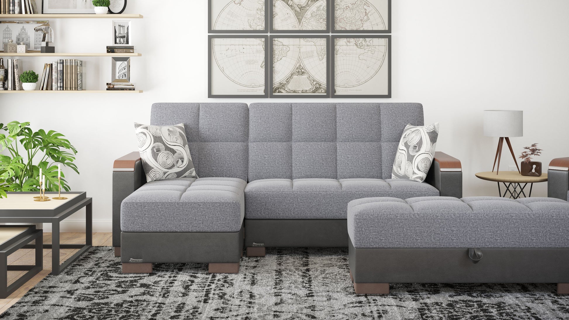Ottomanson Armada X - Upholstered Convertible Wood Trimmed Ottoman With Storage - Gray Chenille