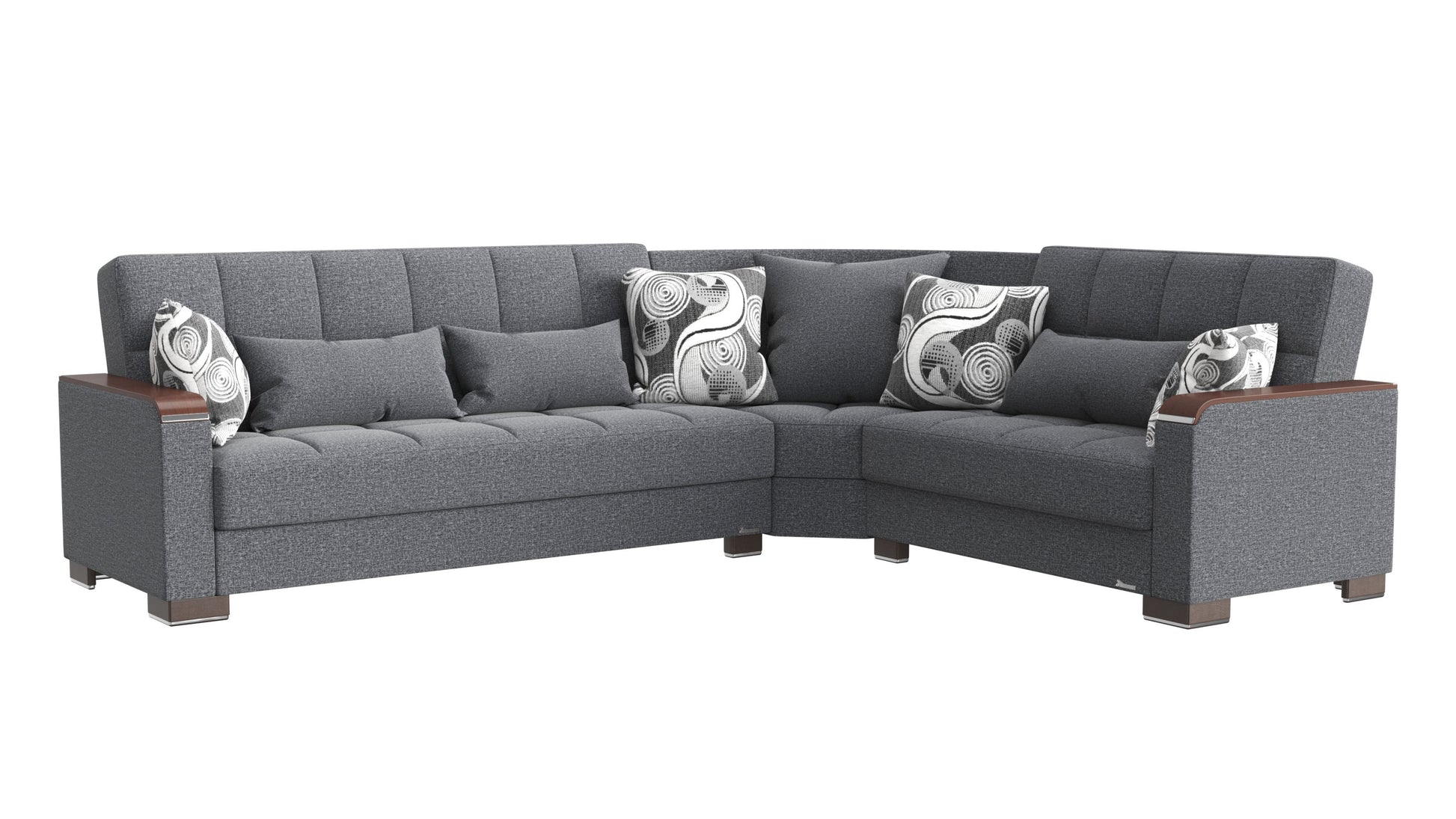 Ottomanson Armada X - Upholstered Convertible Wood Trimmed Sectional With Storage - Gray Polyester