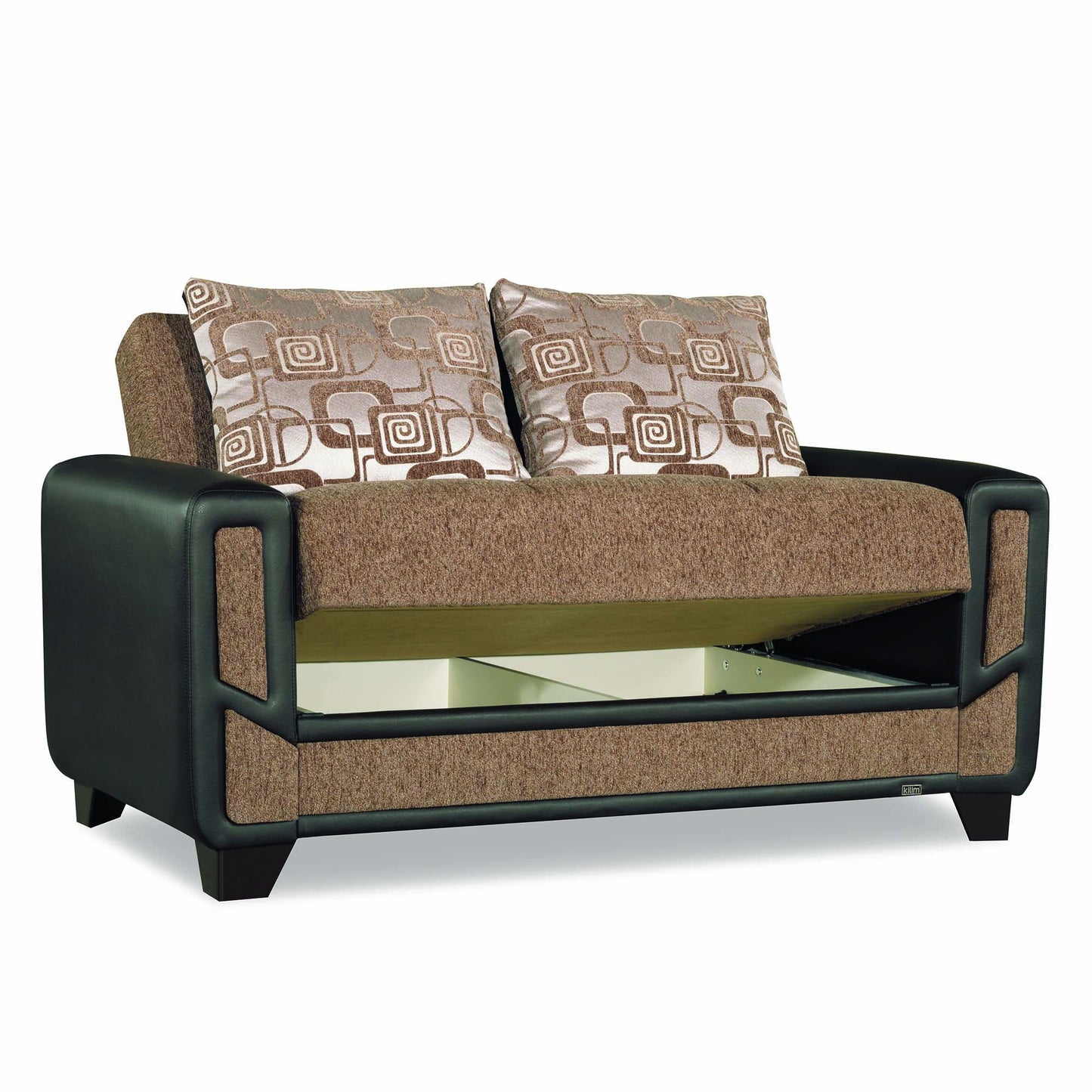 Ottomanson Mondo Modern - Upholstered Convertible Loveseat With Storage - Brown