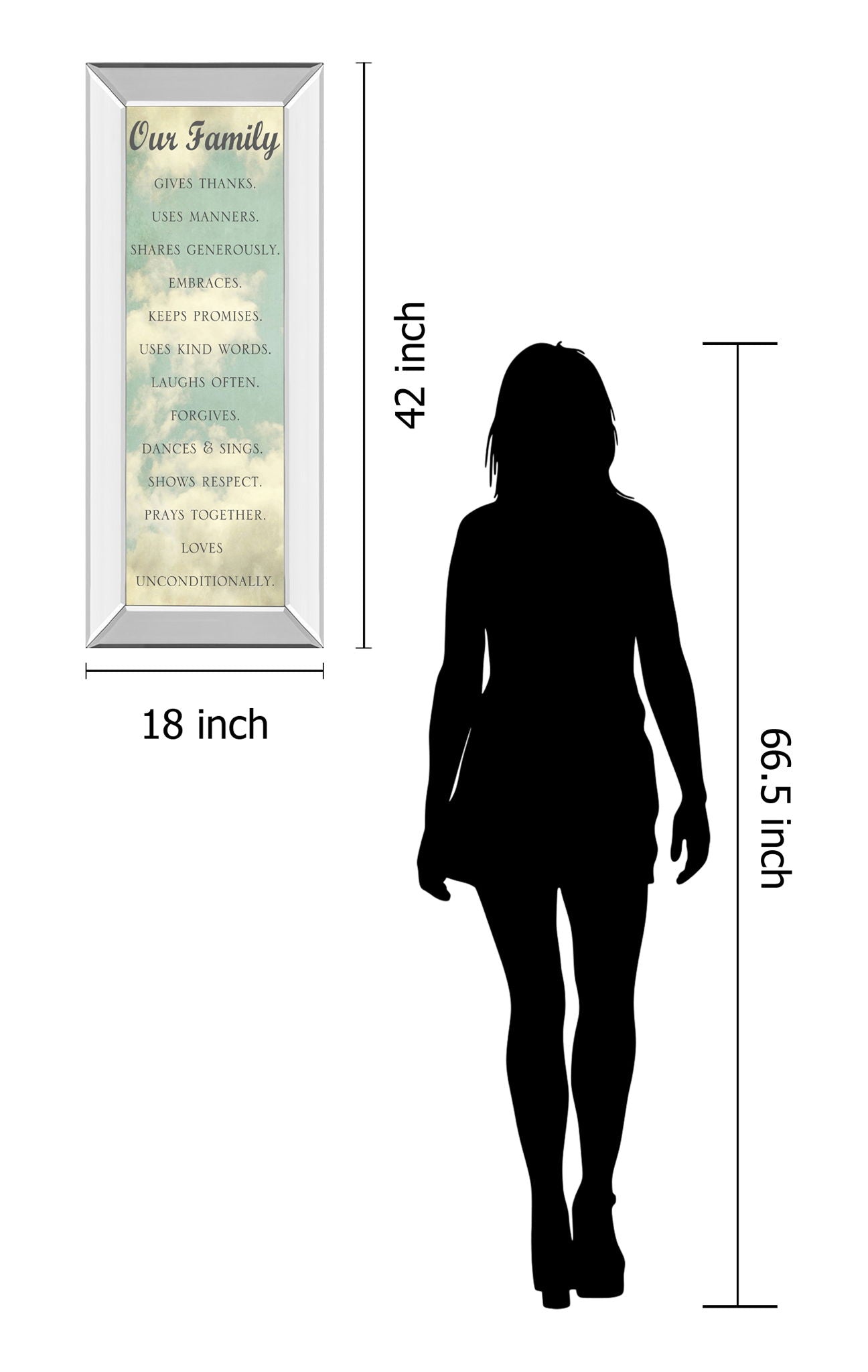 Embrace the heart of your home with this beautifully framed wall art that celebrates the essence of family. Set against a serene cloud backdrop, the piece gently reminds us of the kindness, respect, and love that bind a family together. The mirrored frame adds a modern touch of elegance, reflecting light and warmth into any living room, hallway, or family space. Crafted with care and ready to hang, this artwork serves as a daily inspiration to give thanks, forgive, laugh, and love unconditionally, making your house feel truly like home.