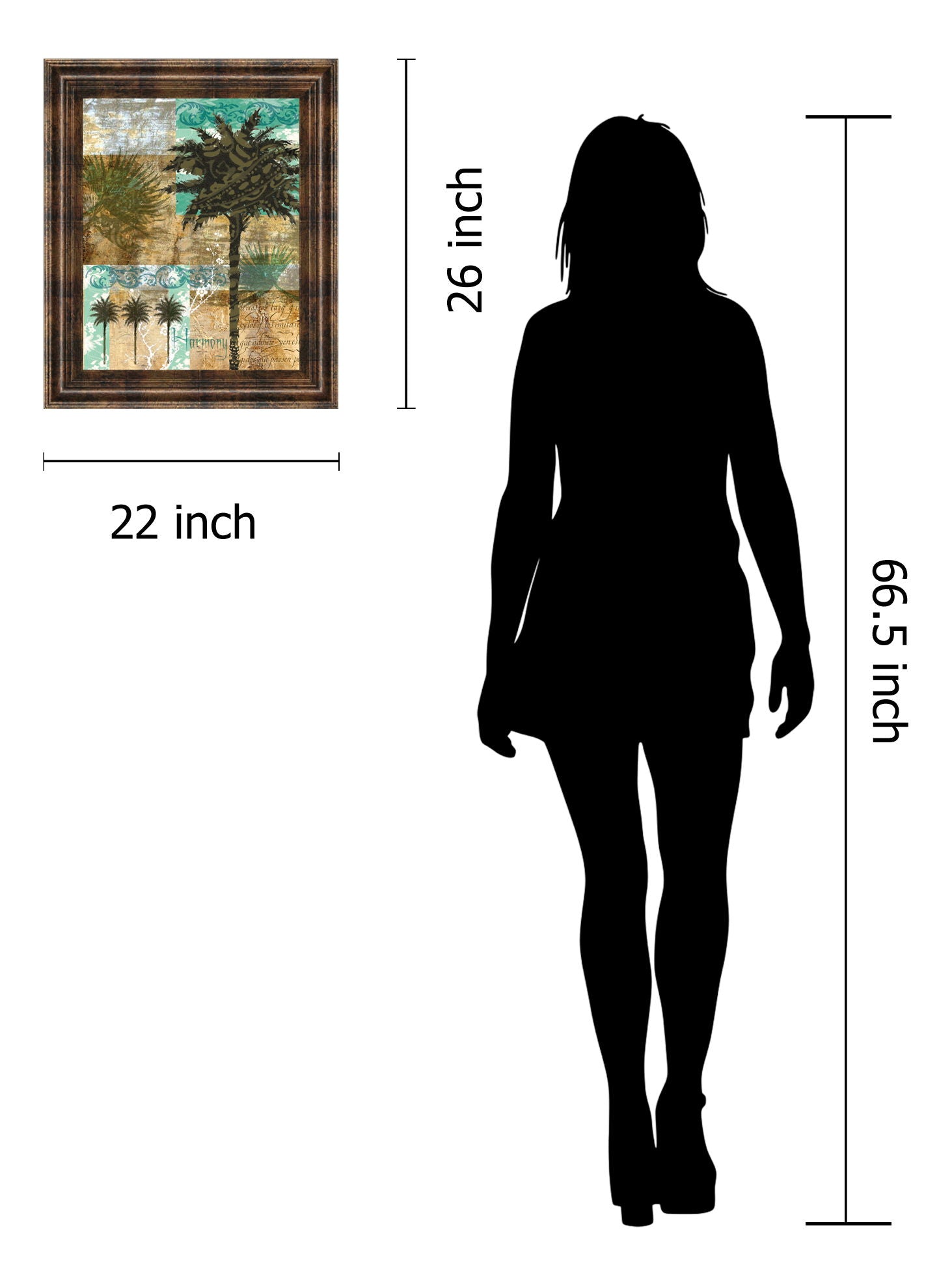Step into a tranquil oasis with this captivating botanical wall art that masterfully blends nature's beauty with artistic expression. Featuring layered palm silhouettes set against a textured collage of earthy browns, soothing teals, and soft beiges, this piece evokes a sense of calm and harmony. Encased in a rich dark chocolate frame with premium real glass, it brings depth and sophistication to any living room or office. Ready to hang and crafted with expert care, this artwork invites you to immerse yourself in its serene tropical charm every day.