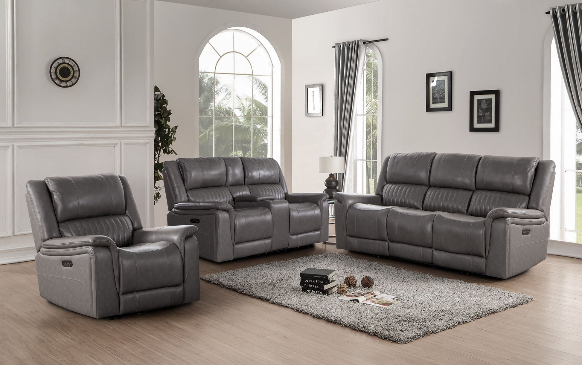 The Palmer Motion Living Room Set combines modern design with luxurious comfort to create the ultimate space for relaxation. This collection features a reclining sofa, a loveseat with center console, and a matching recliner, each designed with plush cushioning, supportive headrests, and smooth reclining mechanisms for maximum comfort. Distinctive stitching details and sleek contemporary lines enhance the overall look, making the Palmer set a stylish centerpiece for any living room.