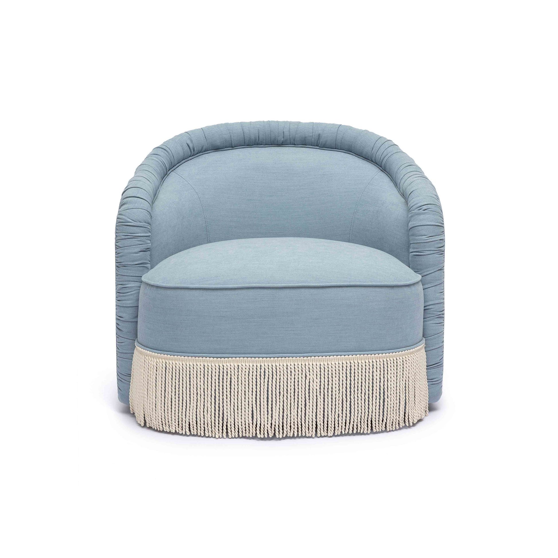 Pamela - Recycled Fabric Tassel Lounge Chair - Faded Blue