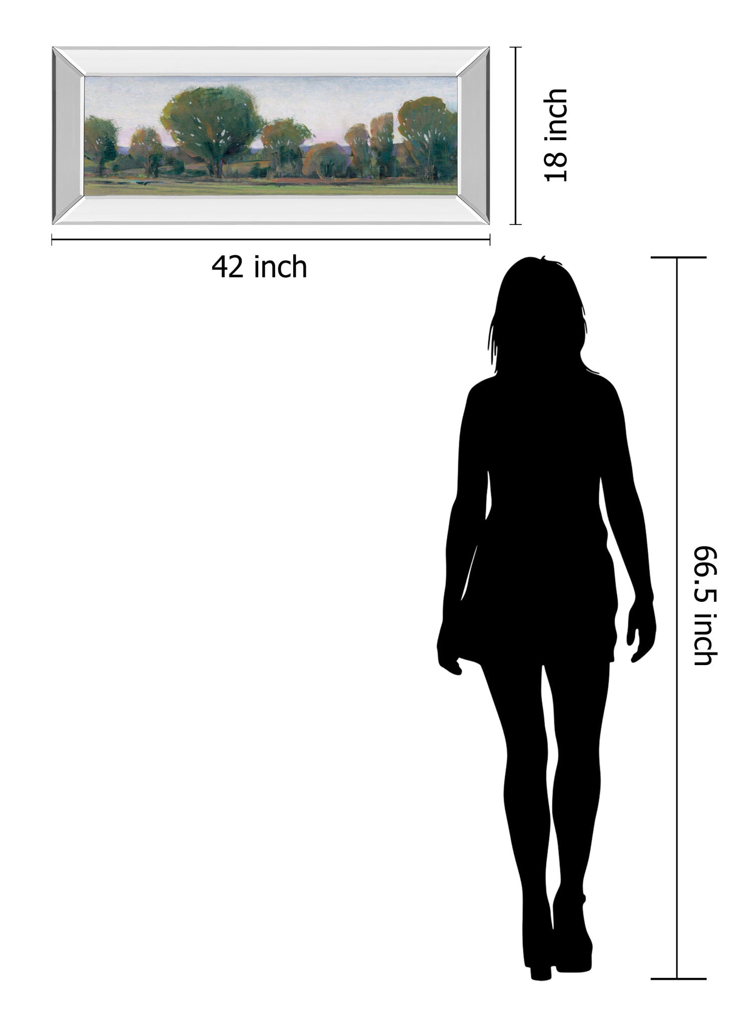 This panoramic view of a treeline captures the quiet beauty of nature in a soft blend of greens, browns, blues, purples, and beige hues. The artwork's traditional botanical style is enhanced by a sleek mirrored frame that adds a modern touch of elegance and depth, making it a captivating centerpiece for any living room, office, or dining space. Protected by premium real glass, the vibrant colors and delicate brushstrokes remain vivid and clear, while the ready-to-hang design ensures effortless installation. Crafted with care, this piece invites a serene and reflective atmosphere into your home, blending classic artistry with contemporary framing for a timeless appeal.