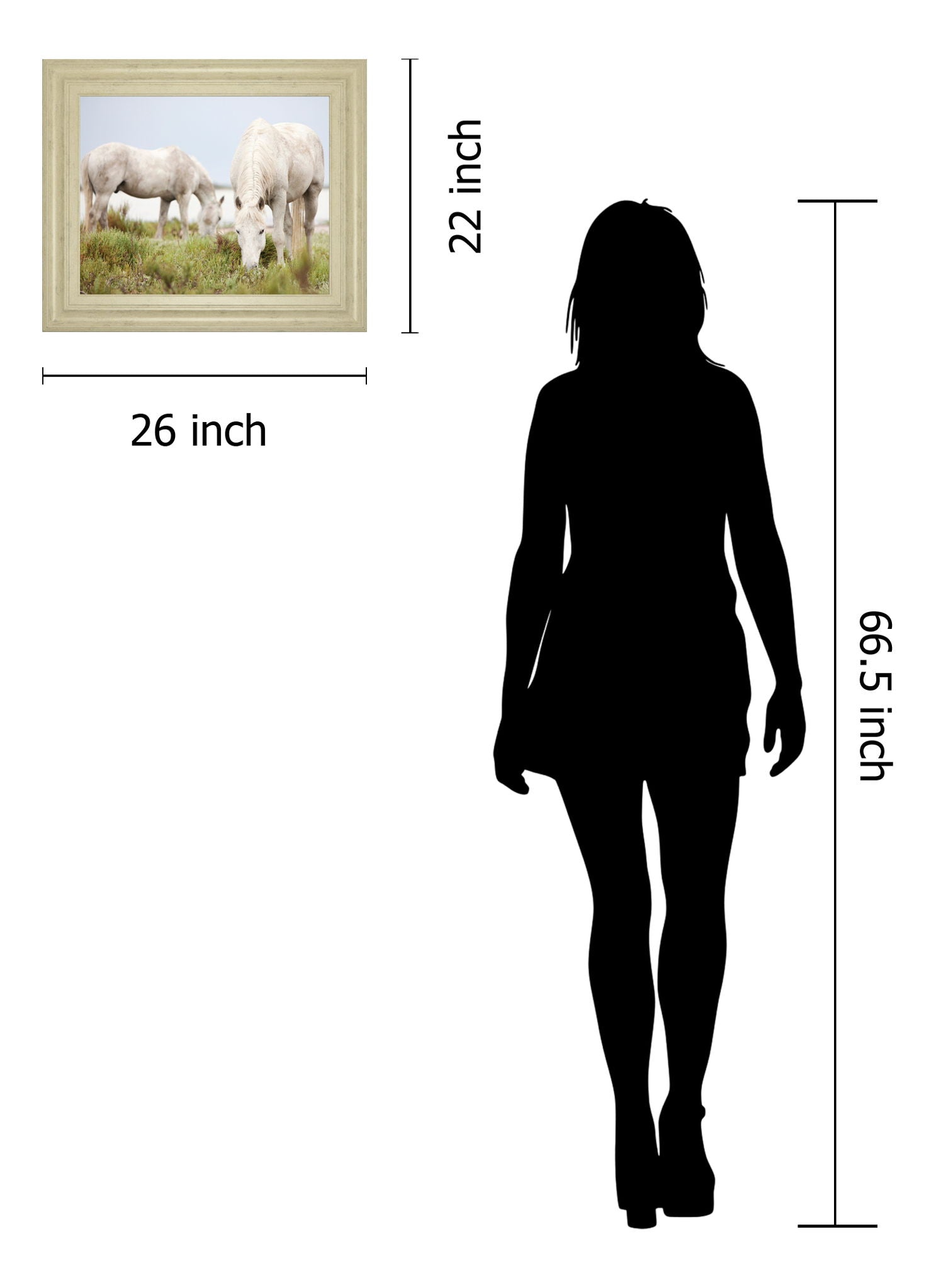 Step into a tranquil countryside scene with this captivating image of two white horses peacefully grazing in a lush green meadow. The soft, muted palette of whites, greens, and beiges creates a calming atmosphere that invites relaxation and reflection. Encased in an elegant ivory bliss frame with premium real glass, this framed photographic print brings a touch of nature's serenity into any living room, bedroom, or office. Its horizontal orientation and contemporary style make it a versatile piece that complements modern interiors while evoking a timeless sense of peace and quiet beauty.
