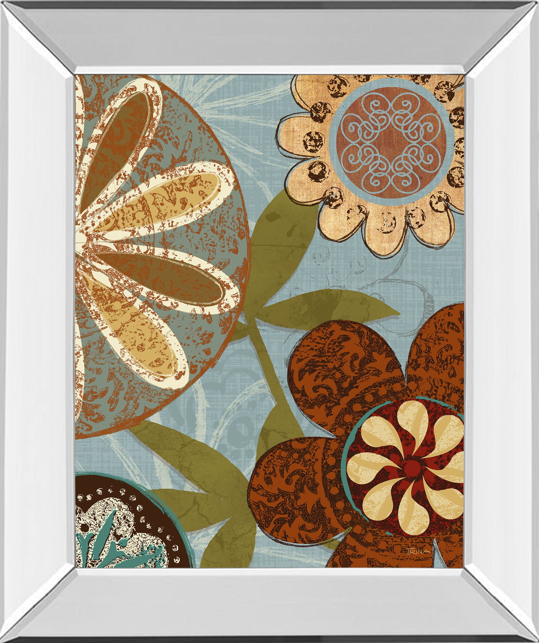 Step into a tranquil oasis with this captivating botanical wall art, where intricate floral patterns in warm earth tones and soft blues create a serene garden scene. The mirrored frame adds a touch of modern elegance, reflecting light and depth to brighten any living room, bedroom, or office. Crafted with premium real glass, this piece combines artistic sophistication with nature-inspired beauty, inviting a peaceful ambiance and refined style into your space.