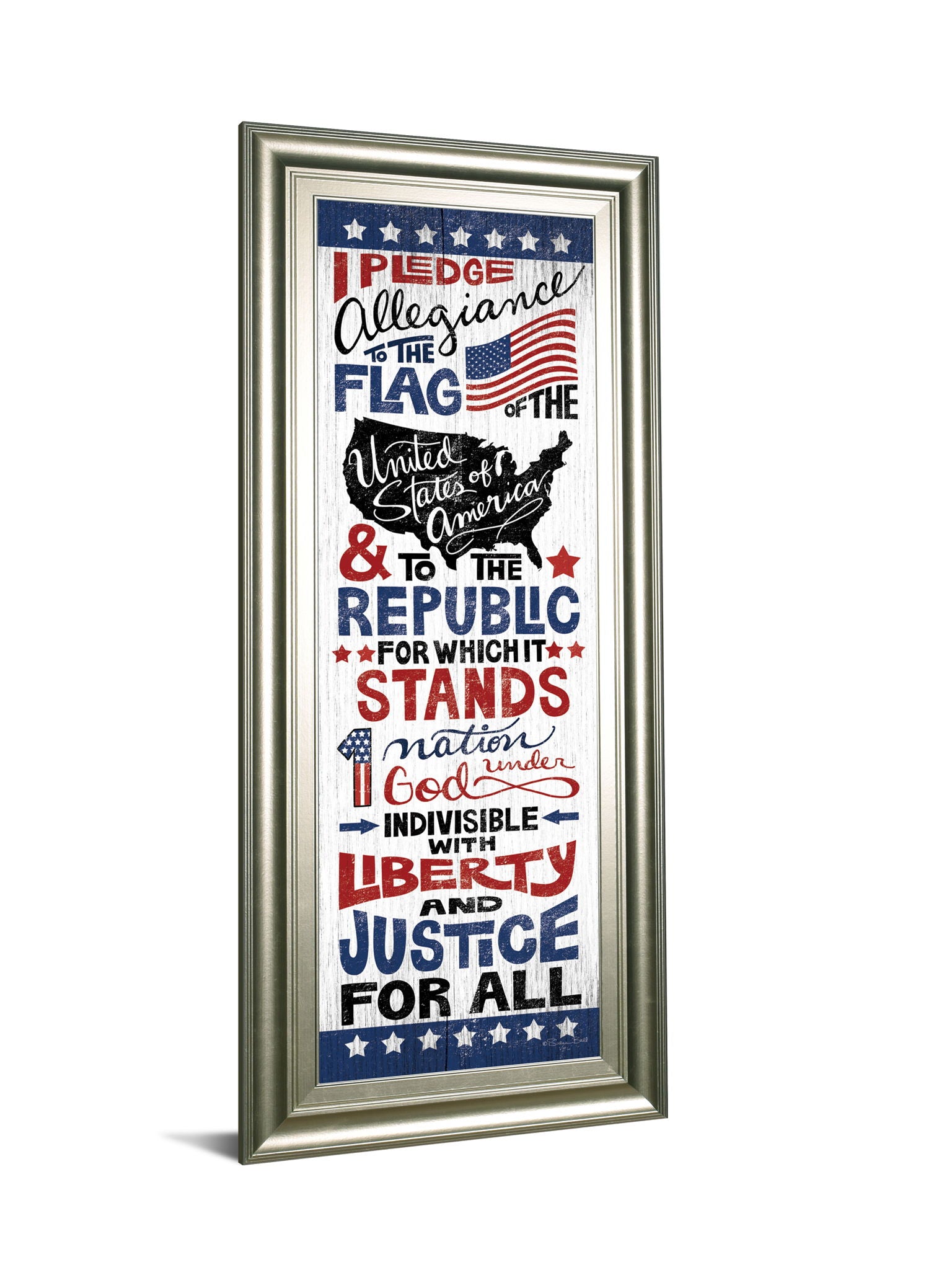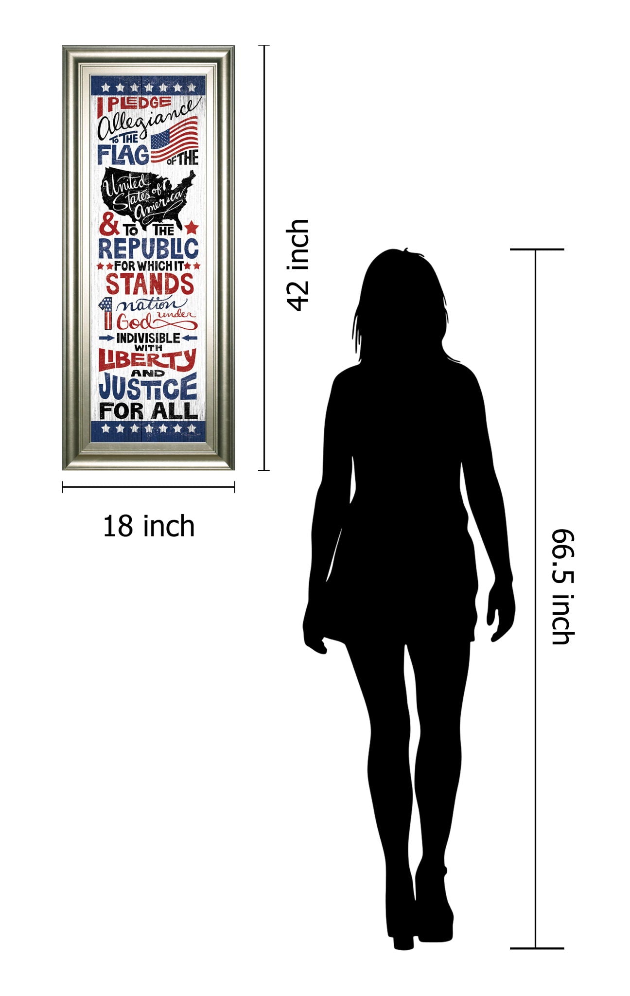 This framed wall art beautifully captures the timeless words of the Pledge of Allegiance, rendered in a vibrant palette of red, white, and blue. The design combines bold typography with iconic American symbols, including the flag and the map of the United States, evoking a deep sense of patriotism and unity. Encased in an elegant silver frame with crystal-clear glass, this piece enhances any living room, office, or den with its meaningful message and classic style. Ready to hang and crafted with premium materials, it serves as a lasting tribute to the enduring spirit and values of the nation.