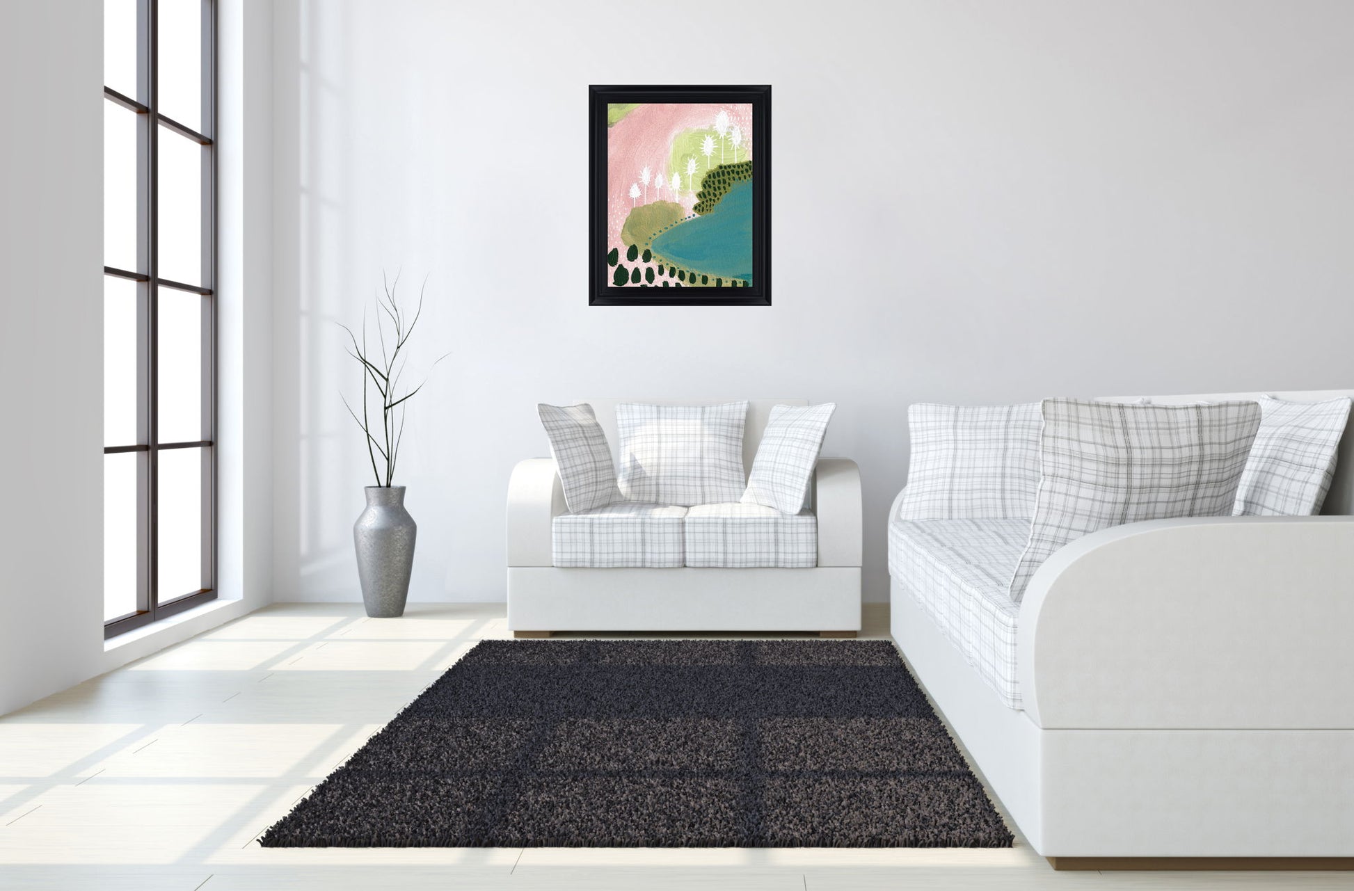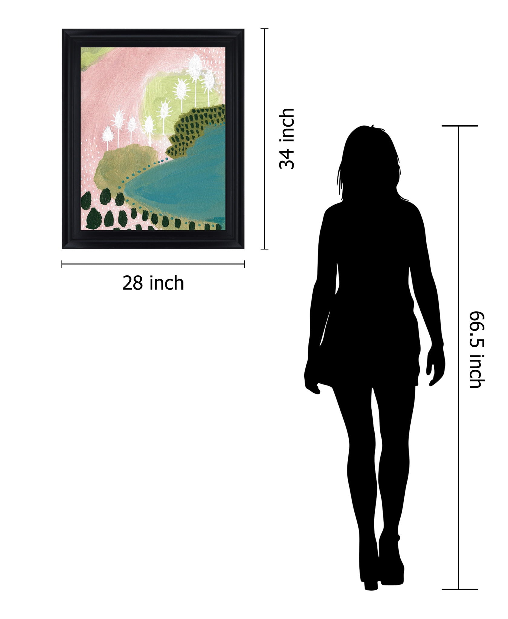Step into a tranquil world with this captivating abstract piece that blends soft pinks, gentle greens, and calming blues into a harmonious composition. Encased in a sleek black frame with premium real glass, this artwork not only protects but also enhances the vibrant colors and intricate details beneath. Perfectly sized for living rooms, bedrooms, or offices, it brings a refined traditional style and peaceful ambiance to any space, ready to hang and elevate your décor with its elegant presence.