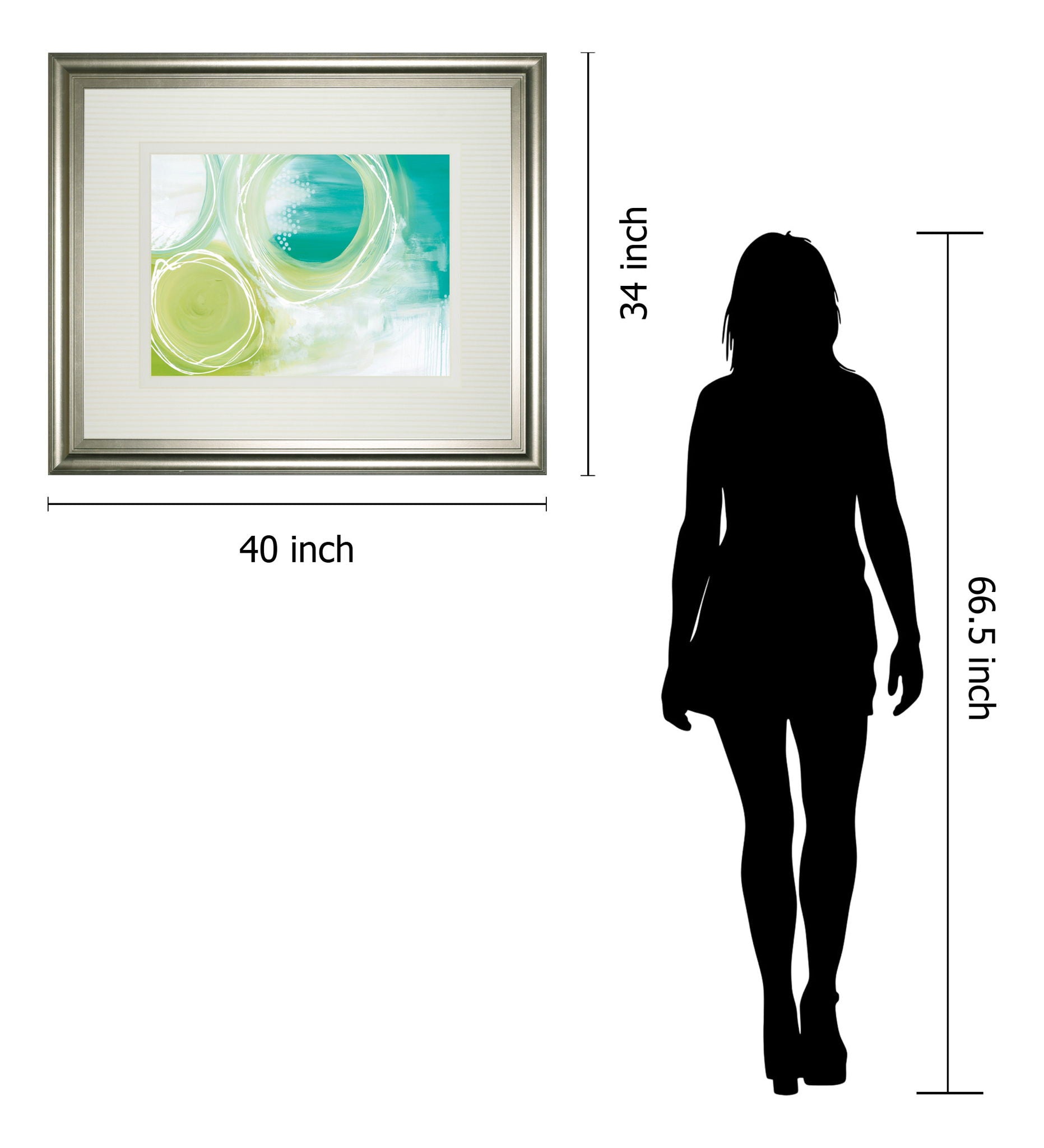 Immerse yourself in the calming embrace of this contemporary abstract art piece, where soothing swirls of teal and green blend seamlessly with delicate white accents. Encased in an elegant silver frame with double matting in cream, this 34 by 40-inch artwork offers a polished gallery-style finish that enhances any living room, bedroom, or office. Protected by premium real glass and ready to hang, it invites a tranquil, modern aesthetic into your space, effortlessly elevating your décor with its serene and sophisticated presence.