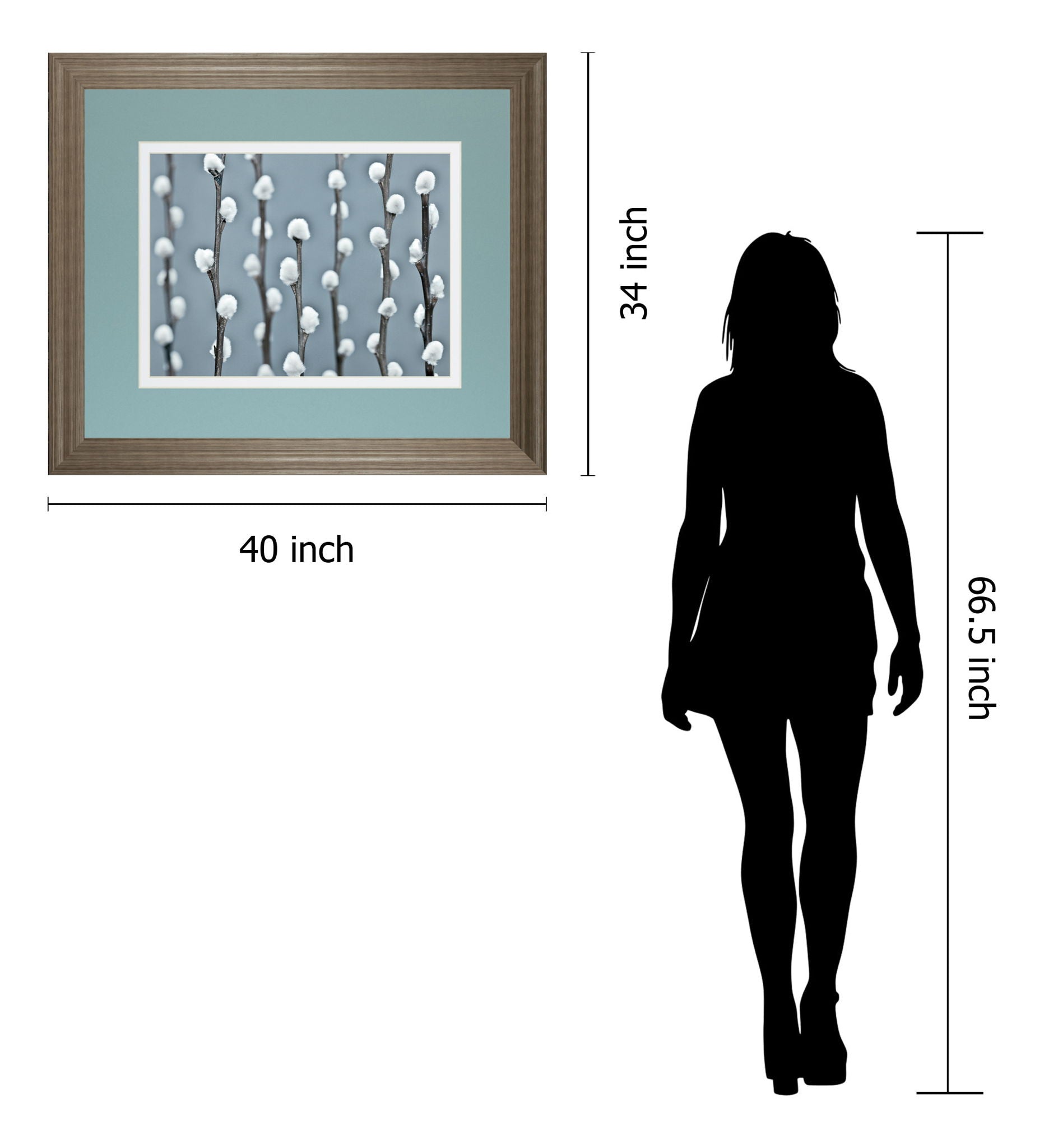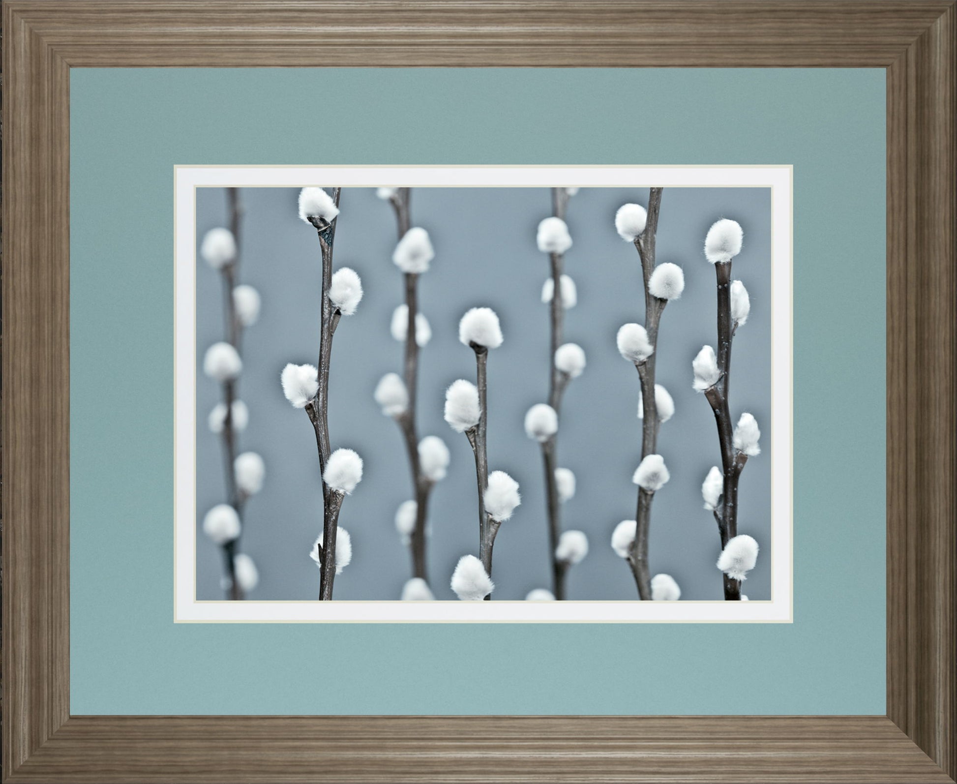 Embrace the gentle tranquility of "Protected," a contemporary botanical photograph that highlights the soft, white pussy willow buds standing gracefully against a muted blue-gray backdrop. This serene image is beautifully framed in a tranquil ash finish with double matting in soft blue and white hues, creating a layered depth that enhances its calming effect. Protected by premium real glass, this piece not only preserves the delicate details but also adds a sophisticated touch to any living room, bedroom, or office. Ready to hang and professionally assembled, "Protected" invites a peaceful, natural elegance into your space.