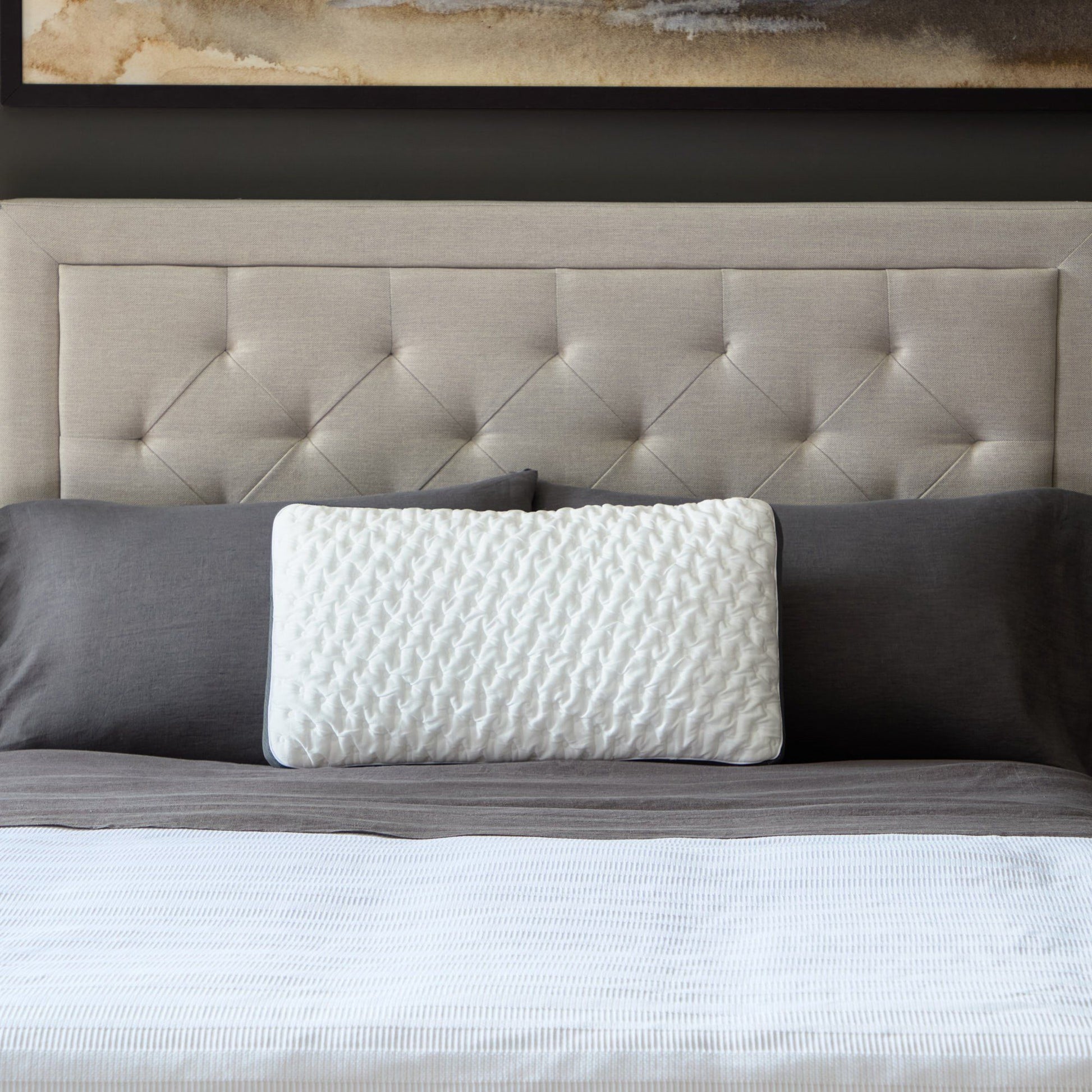 Soft, light, and cooling—this quilted pillow feels like a dream. Get multiple benefits from the two distinct feels, with a traditional filled pillow on one side and a plush gel memory foam pillow on the other.  A cushioning Gel Dough™ memory foam side helps relieve pressure points with a slow, sink-in feel, and a fluffy down alternative side creates the traditional feeling of a filled pillow. A new style of HyperChill™ cover is instantly cooling, but with light, airy, and plush quilting that looks and feels great.