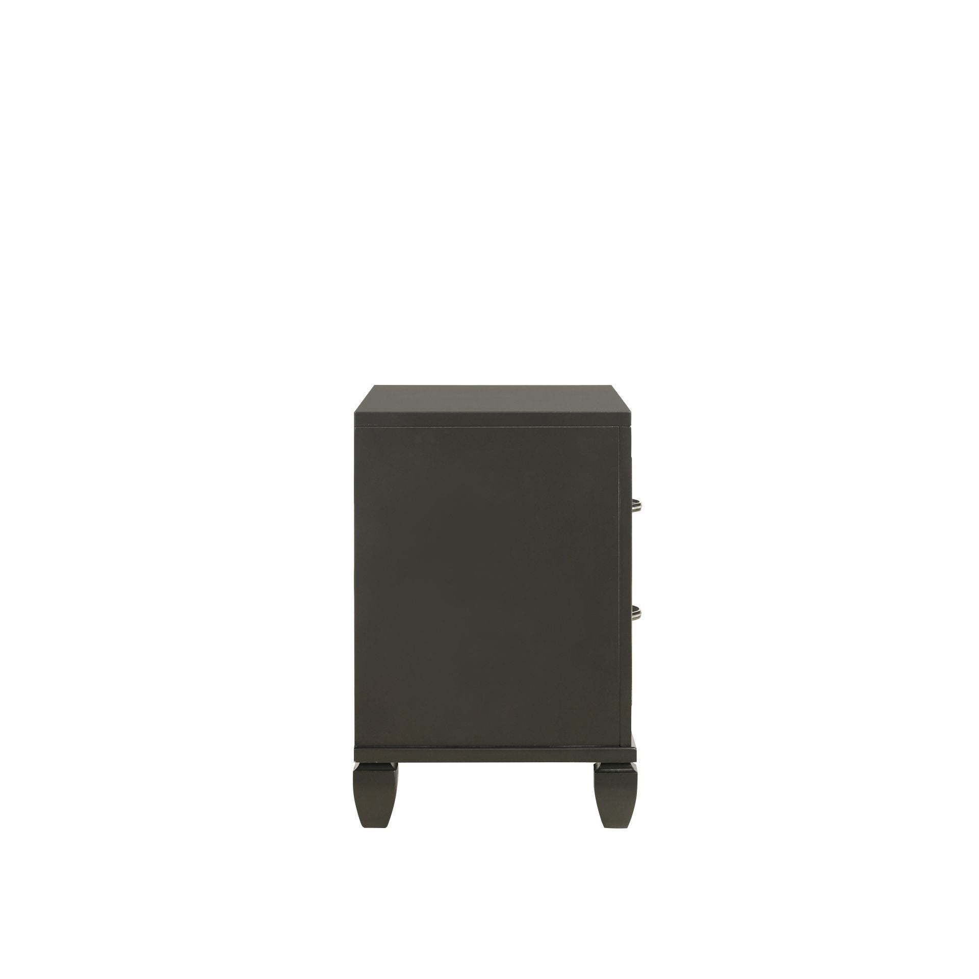 Discover the RadianceTwo Drawer Nightstand, a perfect blend of quality construction and luxurious finish. Crafted from a combination of Solid Rubberwood and manufactured woods, this nightstand offers ultimate stability and durability. The semi-gloss lacquer finish provides a silky, modern framework to this eye-catching collection. Glamorous details such as Glossy textured inlays and mylar trim frame the drawers, which showcase a crushed crystal look decorative laminate front, topped by brushed chrome finish handles with inset crystal accents. The heirloom-quality English dovetail drawers operate smoothly on full extension glides, with finished interiors providing snag-free storage. The top drawers have felt lining, offering added protection for your jewelry, watches, or glasses. Add a glamorous appeal to your bedroom with the Radiance Nightstand.